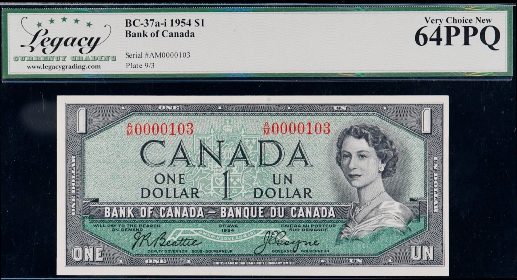 Low Number; 1954 $1 BC-37a-i #A/M0000103 LCG Choice Uncirculated-64PPQ