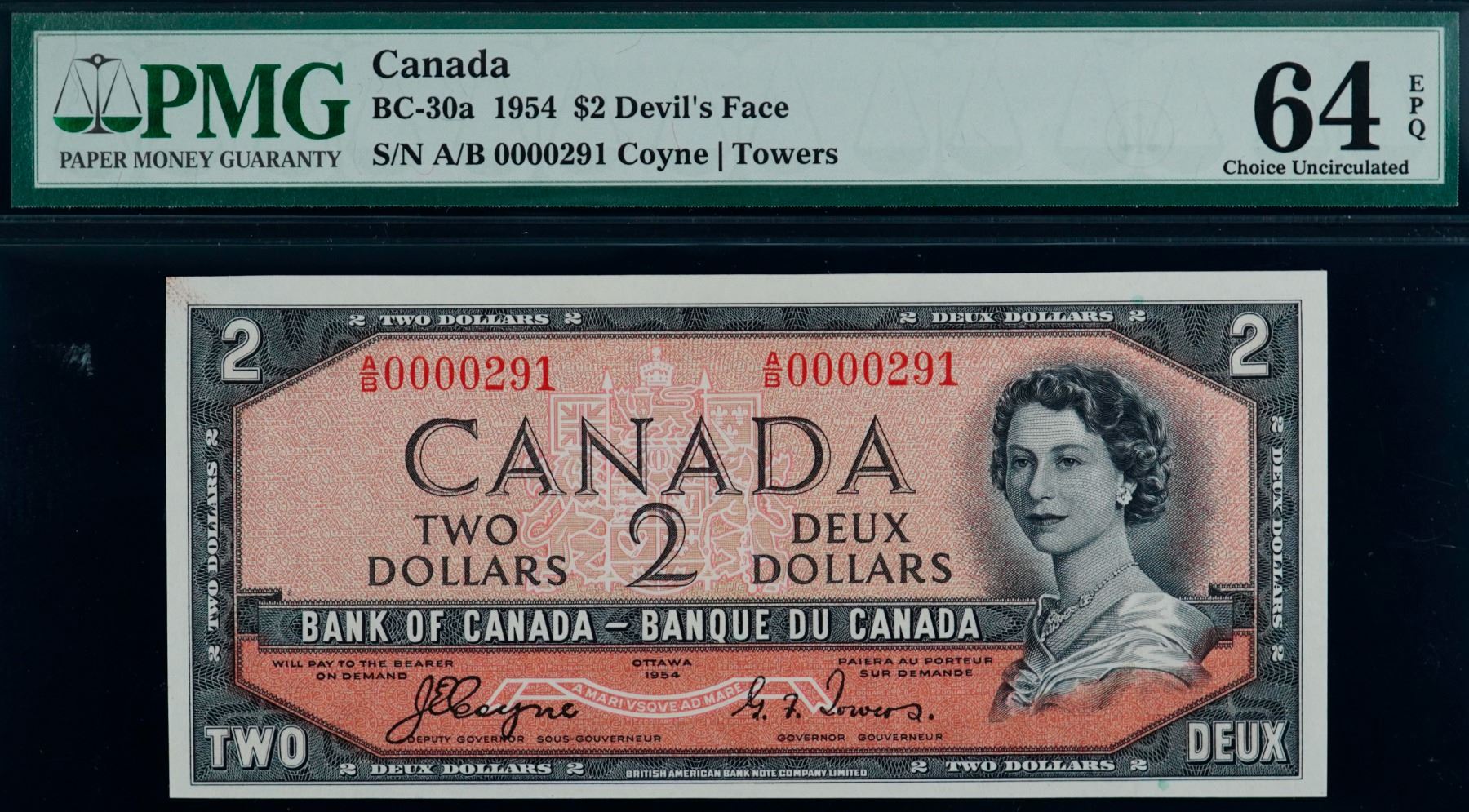 Low Number; 1954 $2 BC-30a #A/B0000291 PMG UNC 64EPQ.