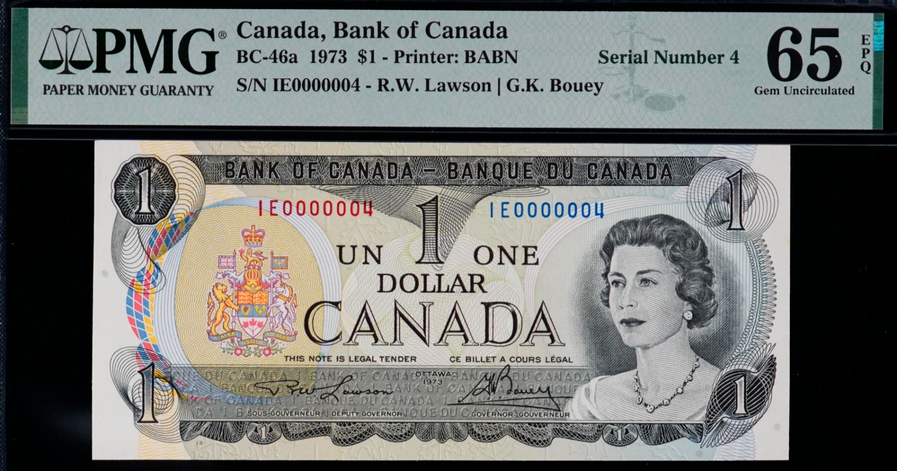 Low Number; 1973 $1 BC-46a N5-ii #IE 0000004 PMG Gem Uncirculated-65 EPQ