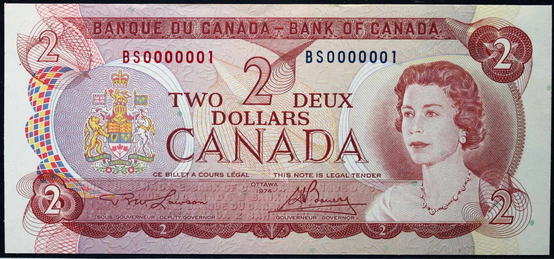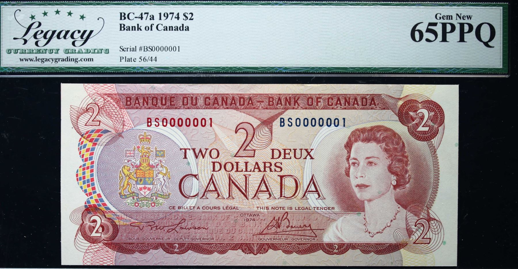 Low Number; 1974 $2 BC-47A #BS0000001 LCG Gem Uncirculated-65PPQ. Cool "Number 1" note.
