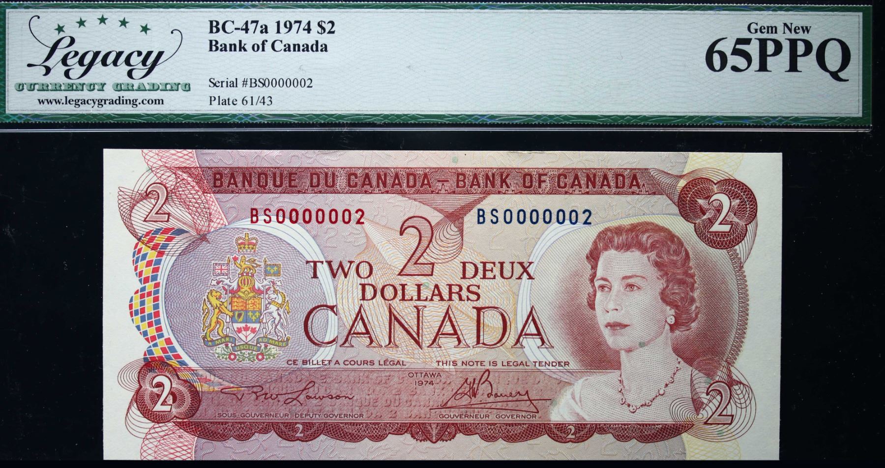 Low Number; 1974 $2 BC-47A #BS0000002 LCG Gem Uncirculated-65PPQ
