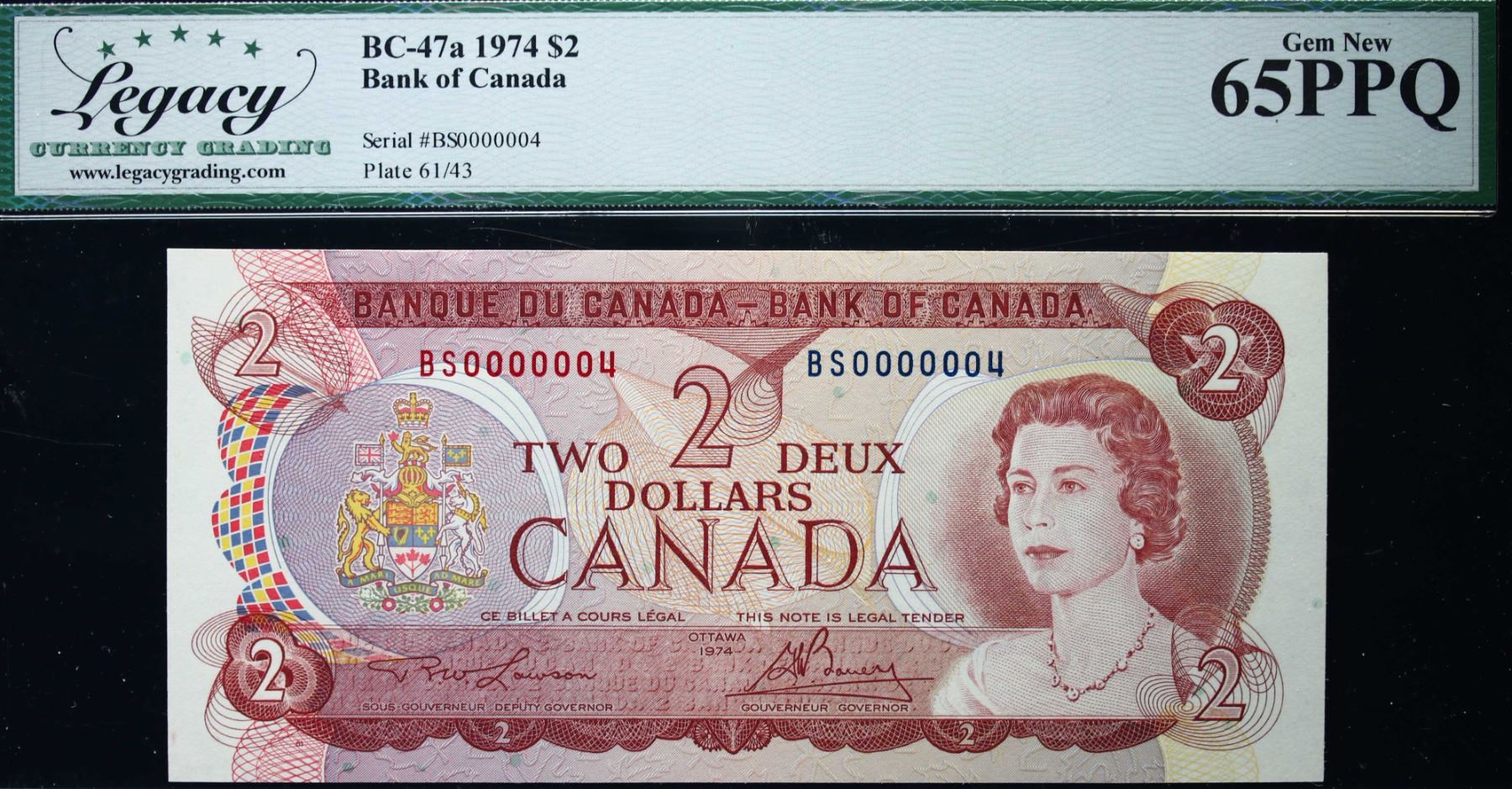 Low Number; 1974 $2 BC-47A #BS0000004 LCG Gem Uncirculated-65PPQ
