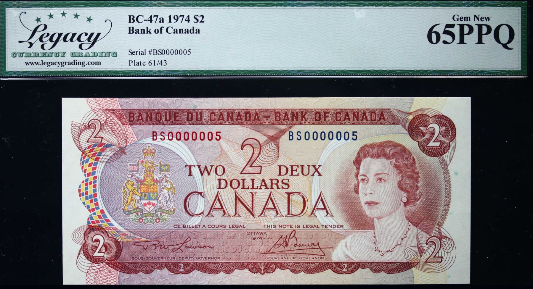Low Number; 1974 $2 BC-47A #BS0000005 LCG Gem Uncirculated-65PPQ