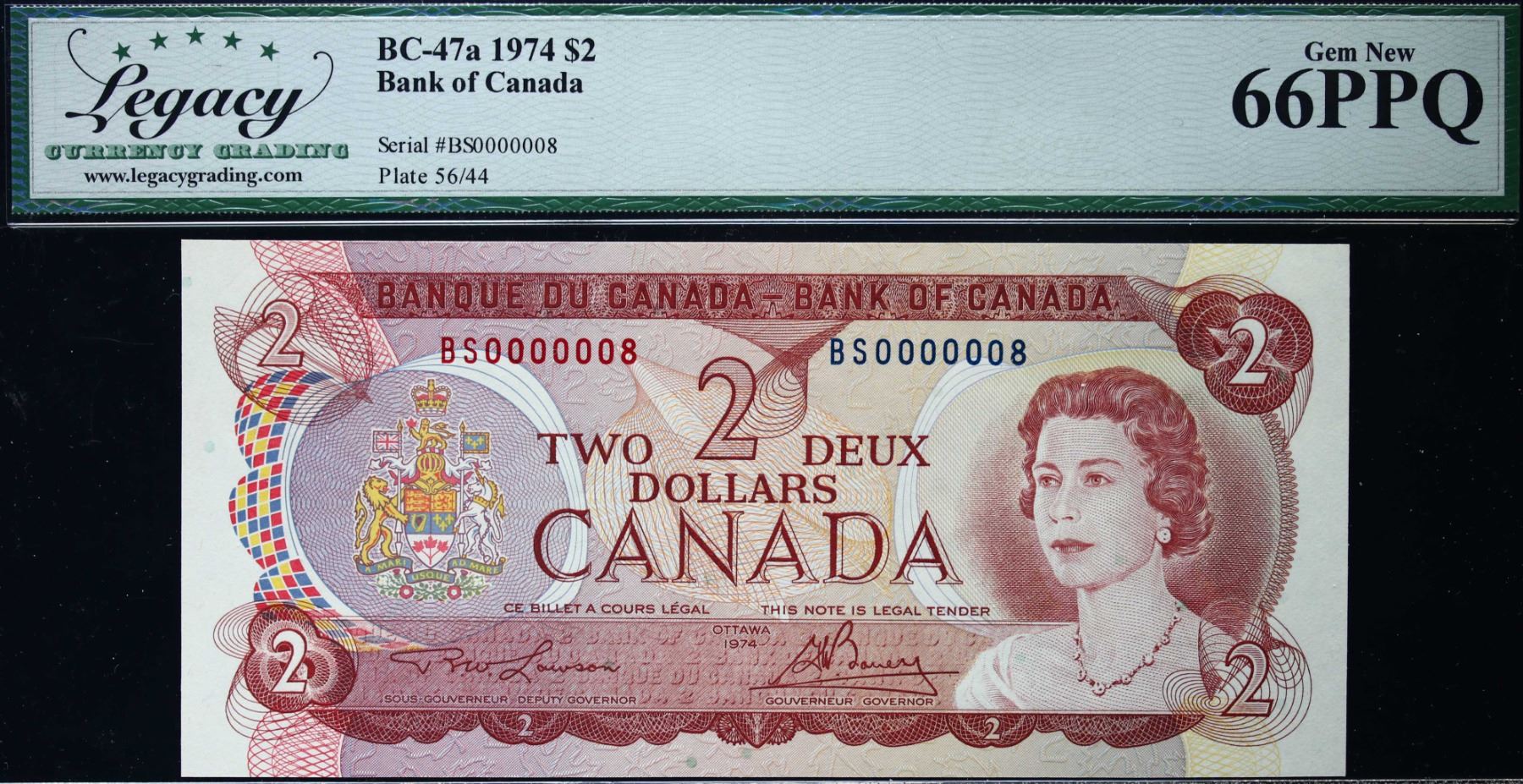 Low Number; 1974 $2 BC-47A #BS0000008 LCG Superb Gem Uncirculated-66PPQ