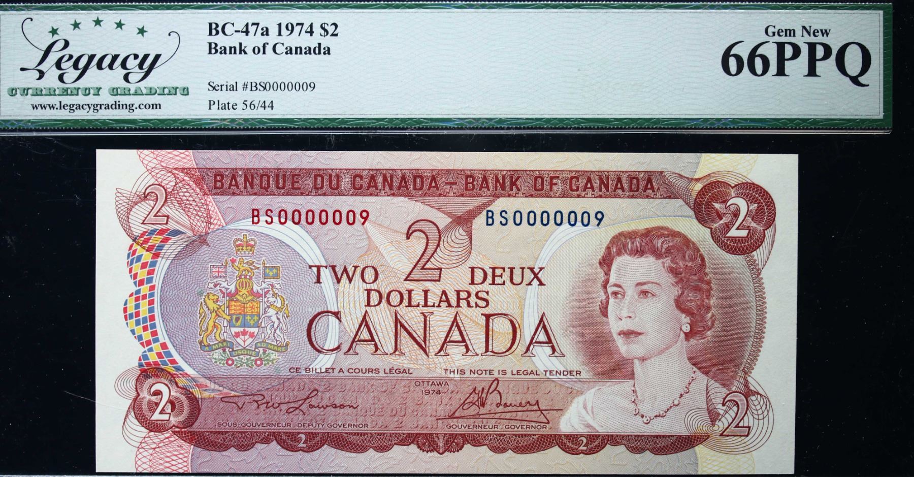 Low Number; 1974 $2 BC-47A #BS0000009 LCG Superb Gem Uncirculated-66PPQ