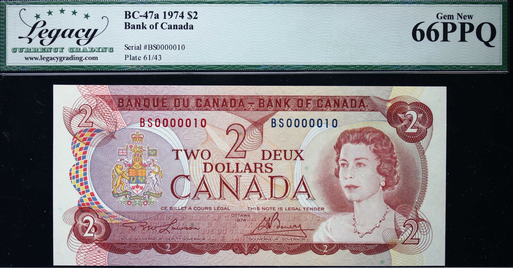 Low Number; 1974 $2 BC-47A #BS0000010 LCG Superb Gem Uncirculated-66PPQ