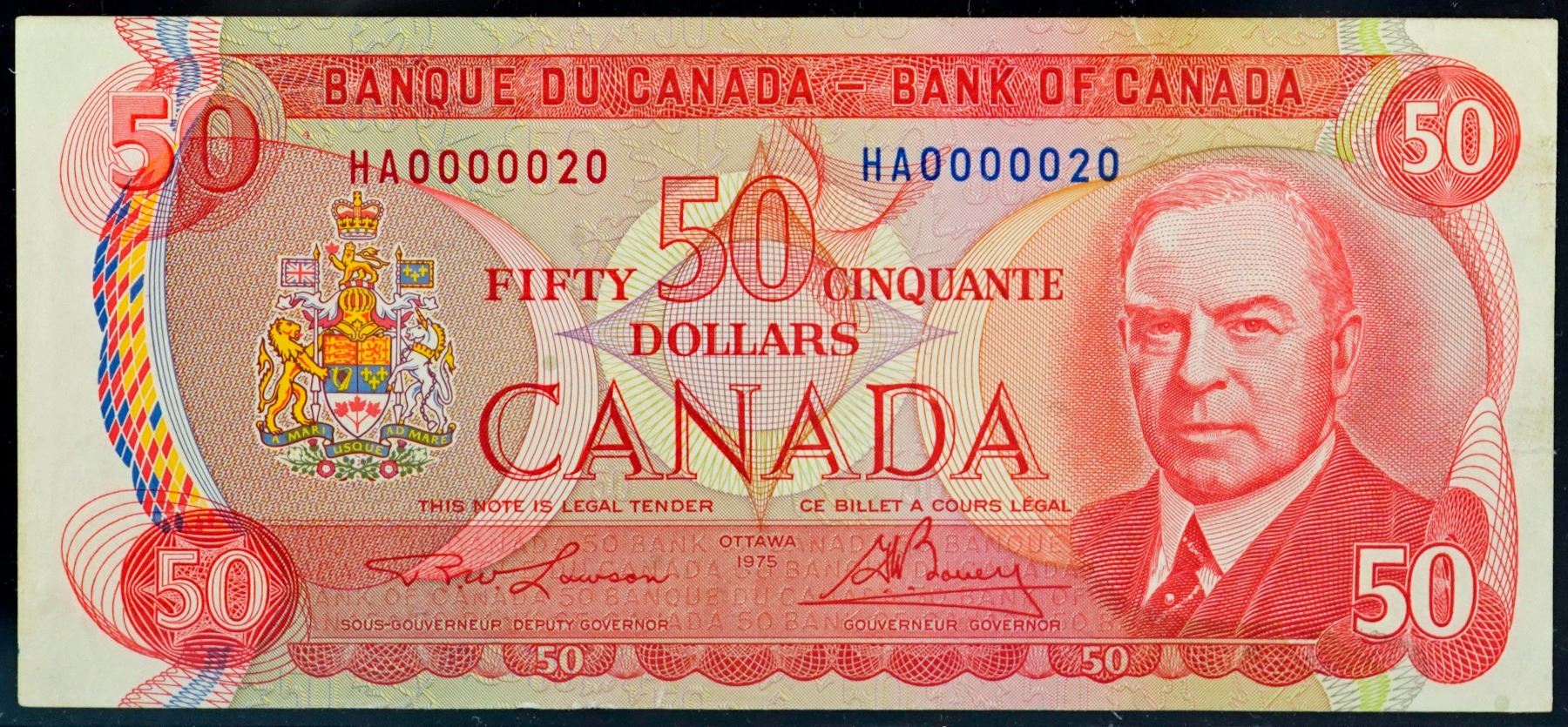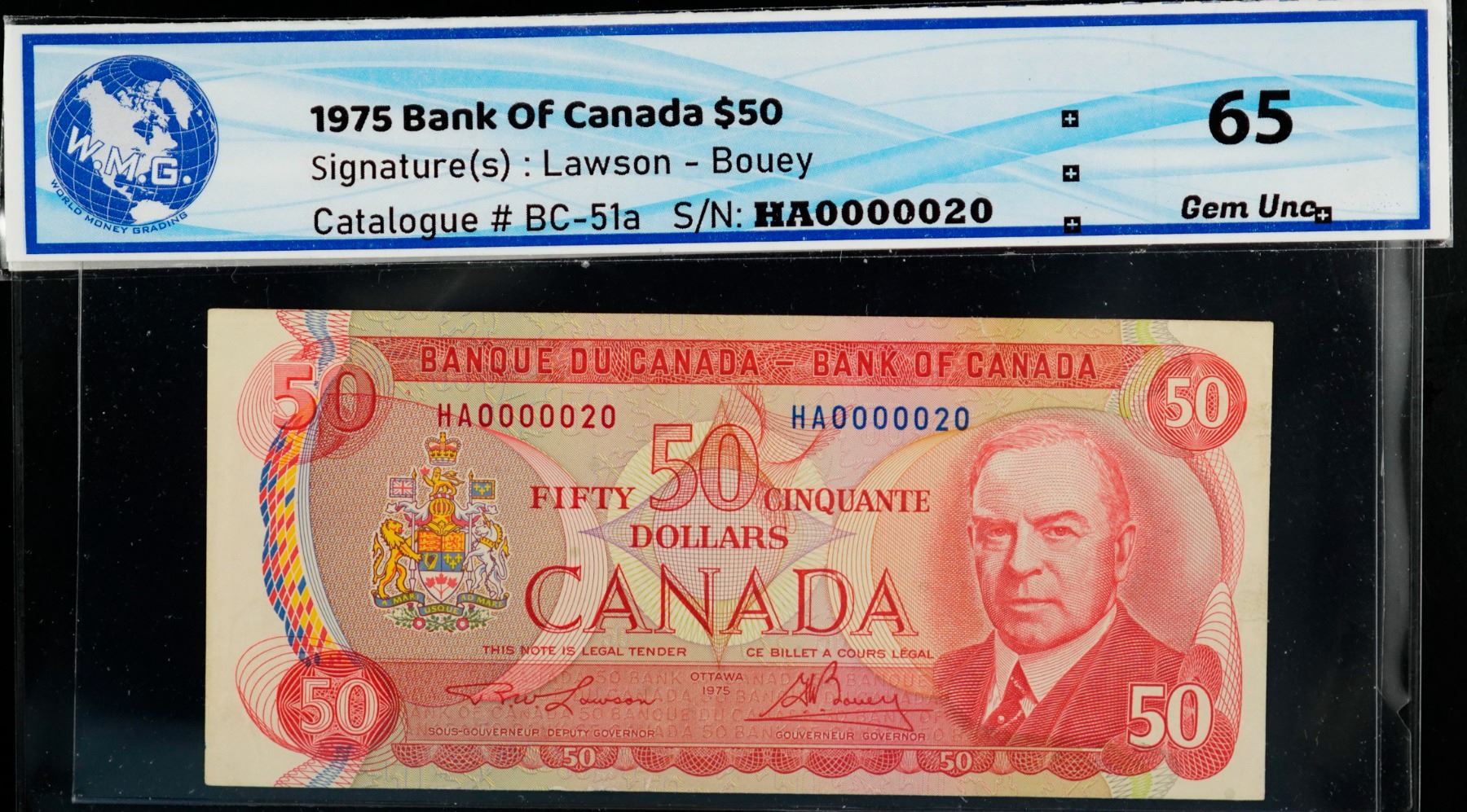 Low Number; 1975 $50 BC-51a #HA0000020 WMG Gem Uncirculated-65