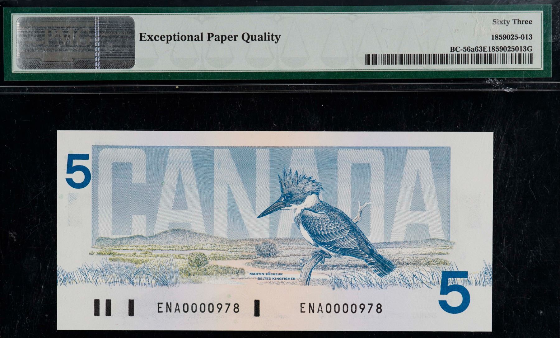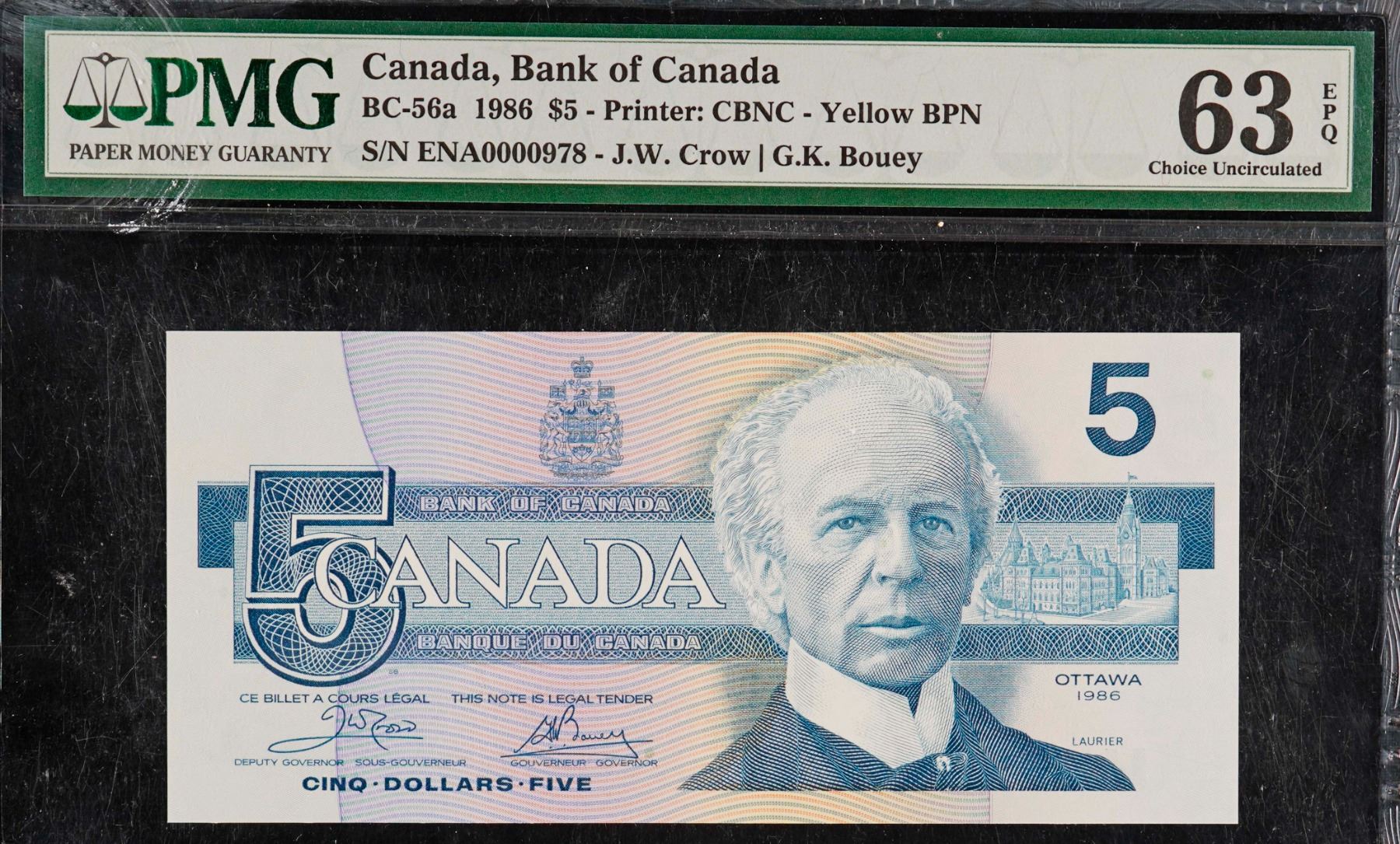 Low Number; 1986 $5 BC-56a #ENA0000978 PMG Choice Uncirculated-63
