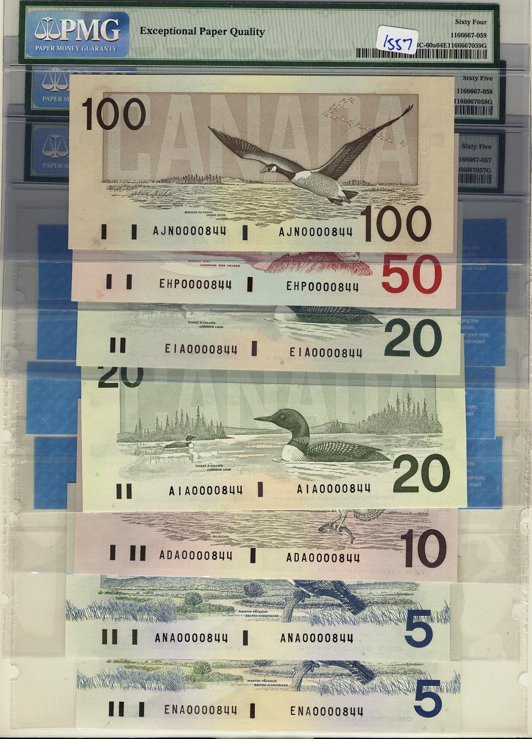 Low Serial Bird Series #0000844, Includes BC-56c-I UNC65, BC-56a UNC66, BC-57a UNC65, BC-58a UNC65,