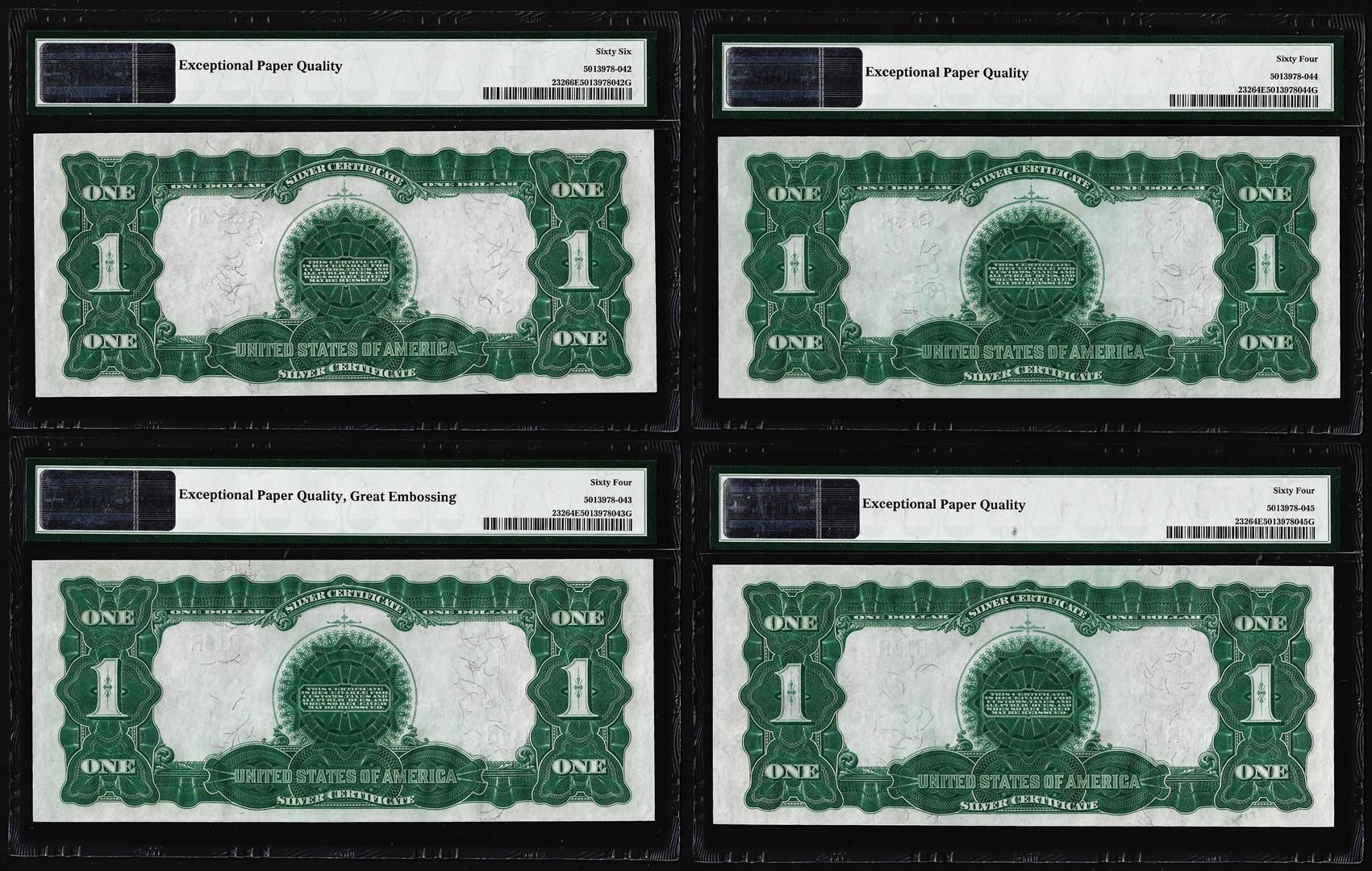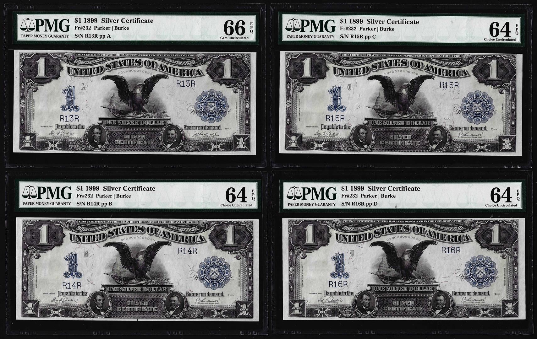 One Low Serial # Cut Sheet of 1899 $1 Black Eagle Silver Certificate Notes PMG 64EPQ/66EPQ. PMG Certified.