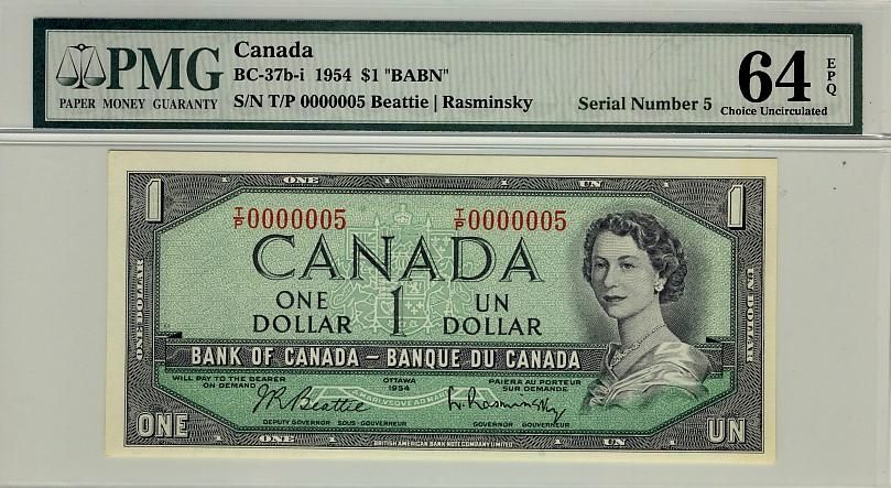Low Serial Number 1954 $1 BC-37b-i #0000005 CH UNC64 EPQ.