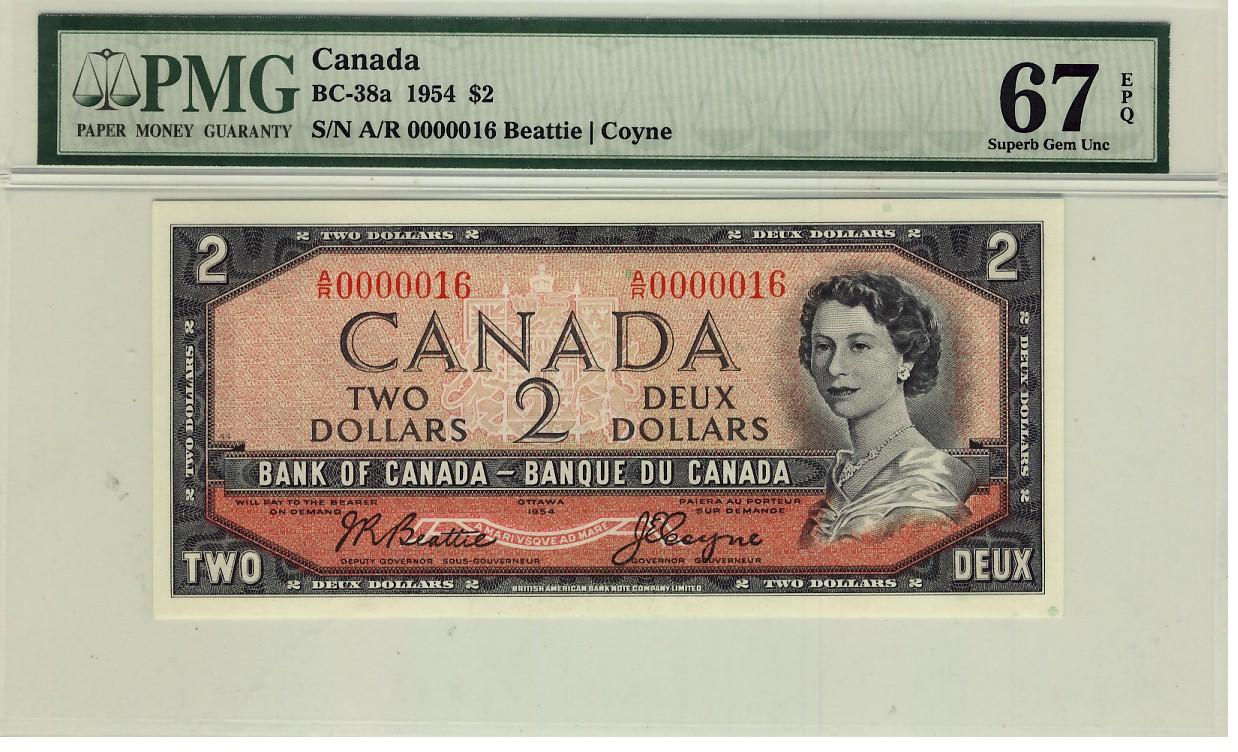 Low Serial Number 1954 $2 BC-38a A/R0000016 PMG UNC67EPQ