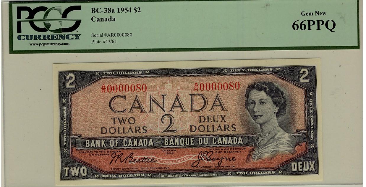 Low Serial Number 1954 $2 BC-38a A/R0000080 PCGS UNC66PPQ