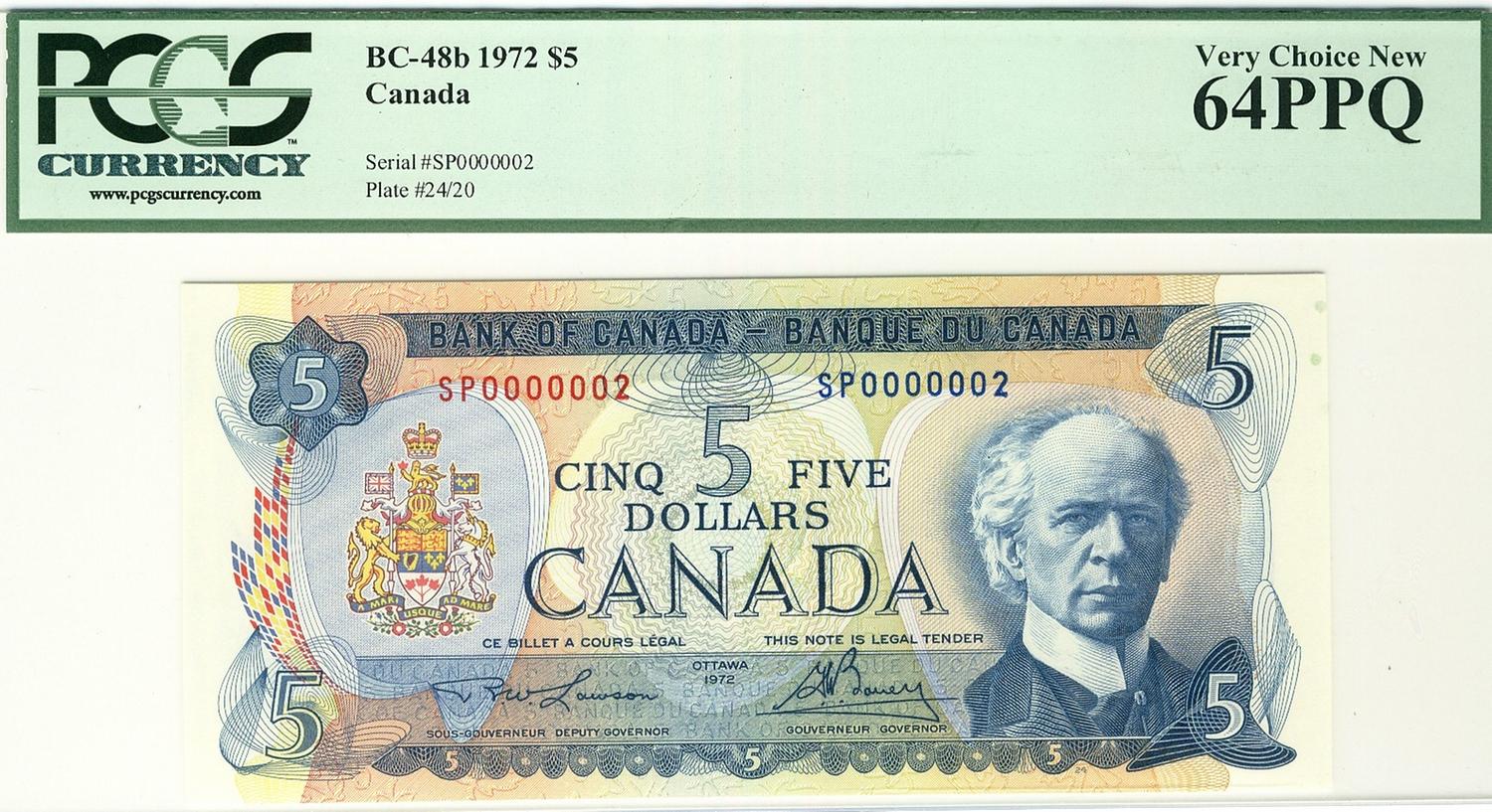 Low Serial Number 1972 $5 BC-48b SP0000002 PCGS UNC64PPQ