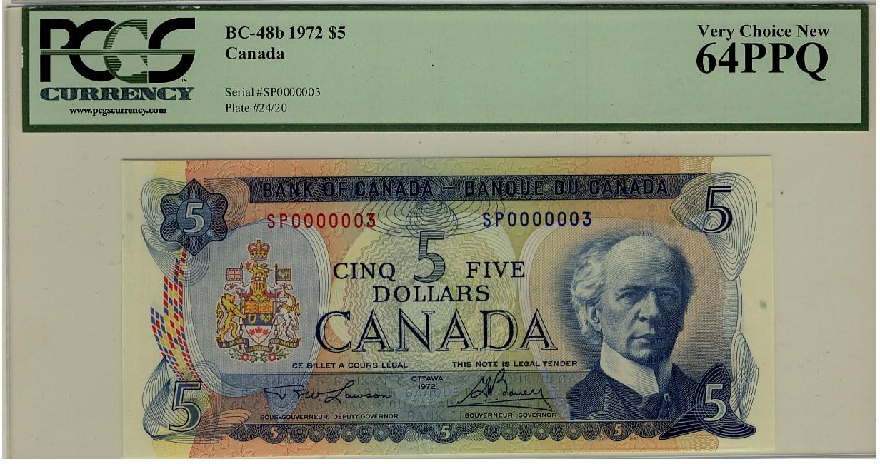 Low Serial Number 1972 $5 BC-48b SP0000003 PCGS UNC64PPQ