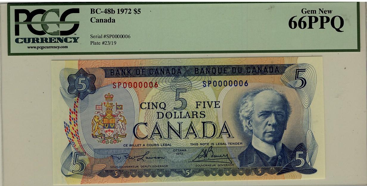 Low Serial Number 1972 $5 BC-48b SP0000006 PCGS UNC66PPQ