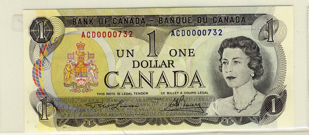 Low Serial Number 1973 $1 BC-46a #ACD0000732. Choice UNC.