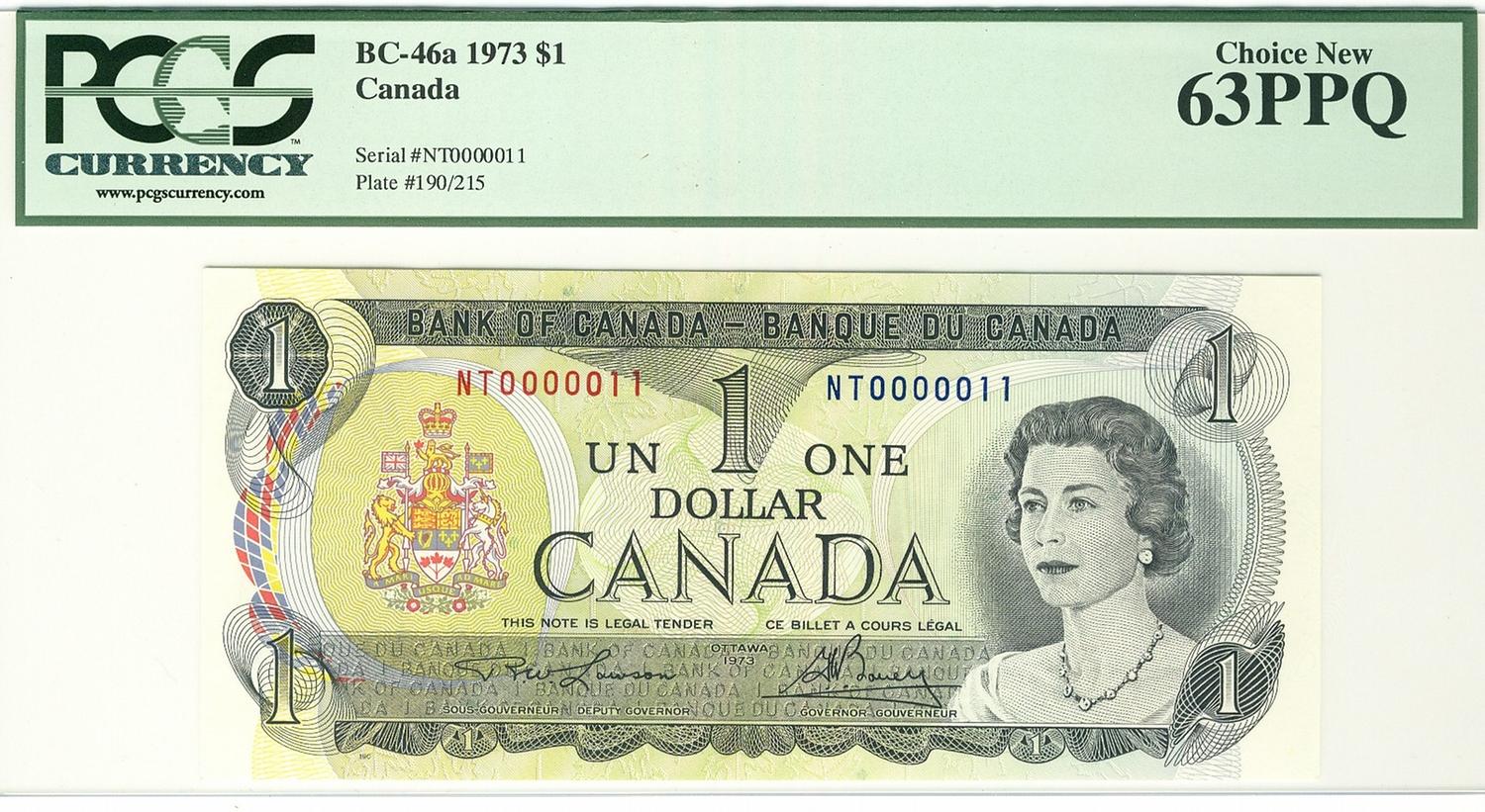 Low Serial Number 1973 $1 BC-46a NT0000011 PCGS UNC63PPQ