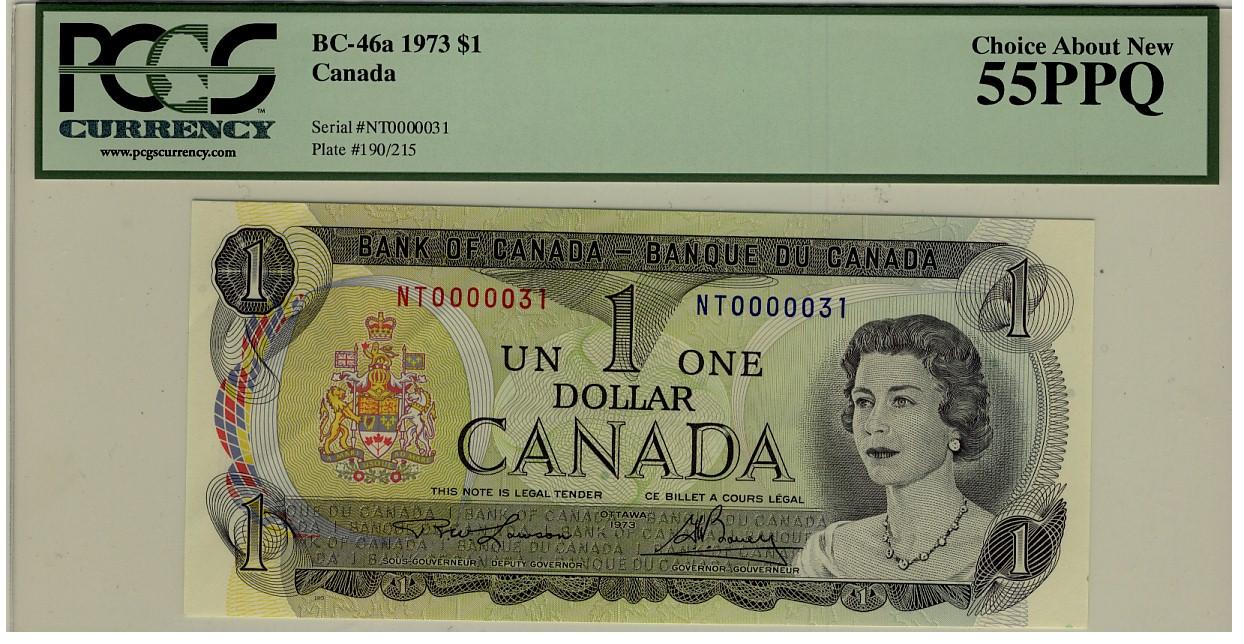 Low Serial Number 1973 $1 BC-46a NT0000031 PCGS AU55PPQ