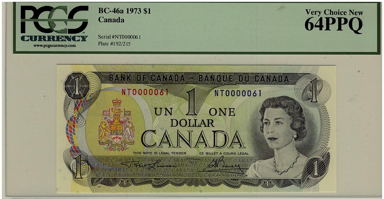 Low Serial Number 1973 $1 BC-46a NT0000061 PCGS UNC64PPQ