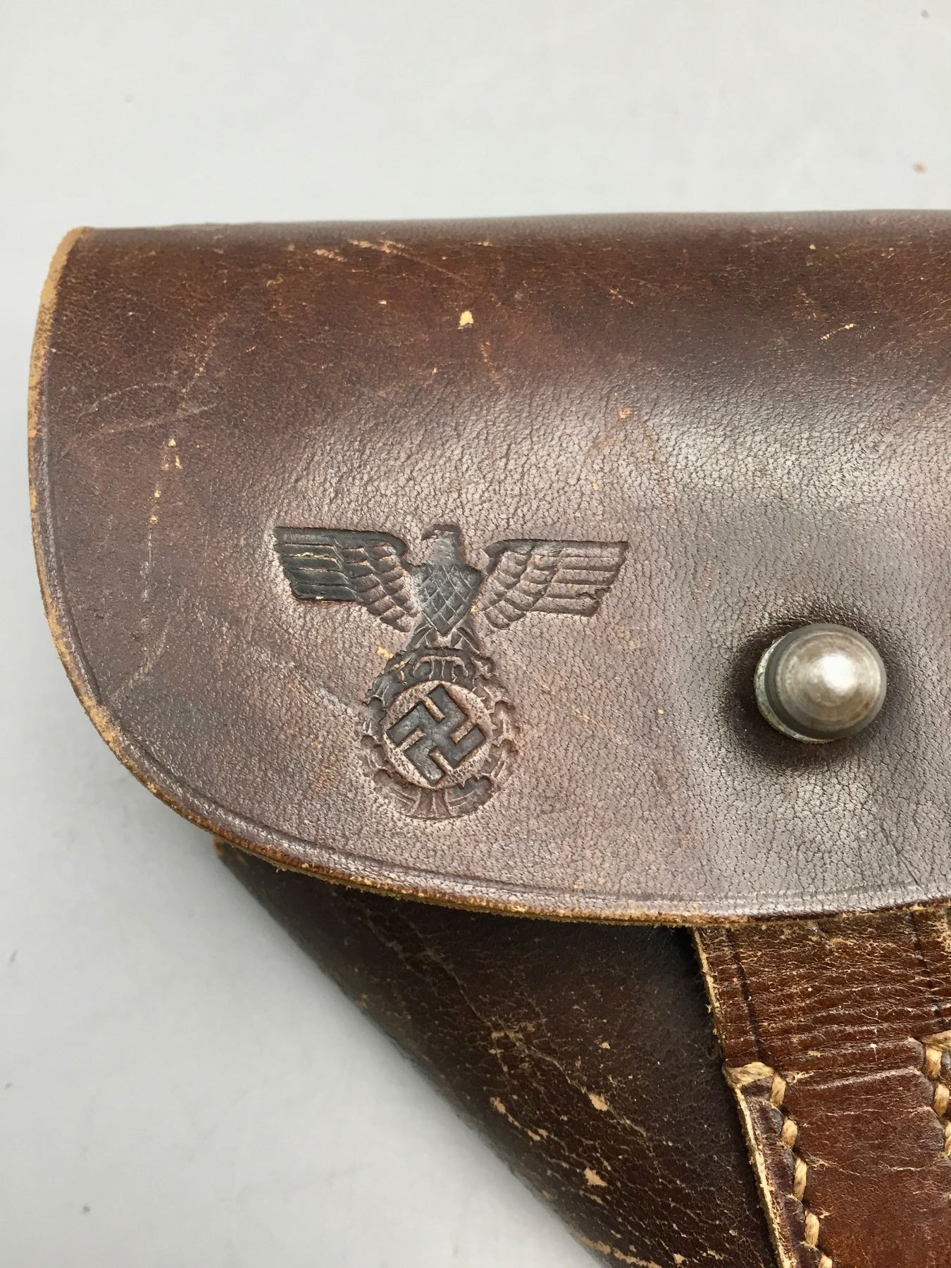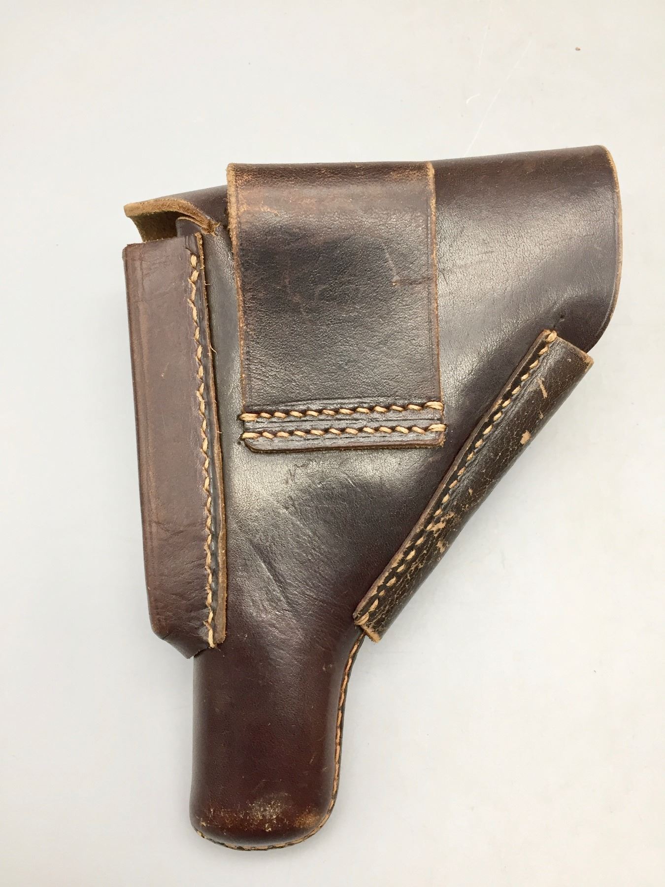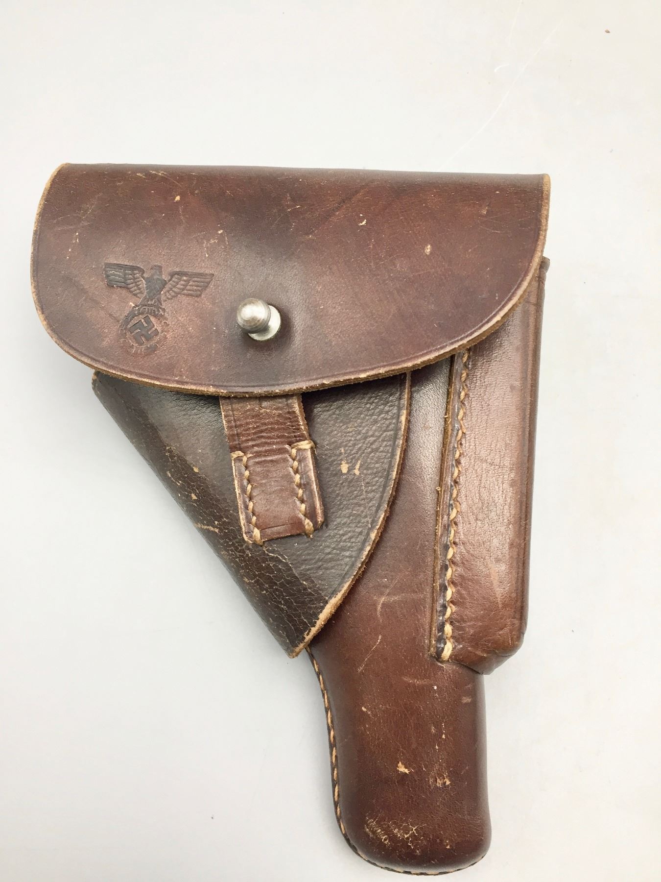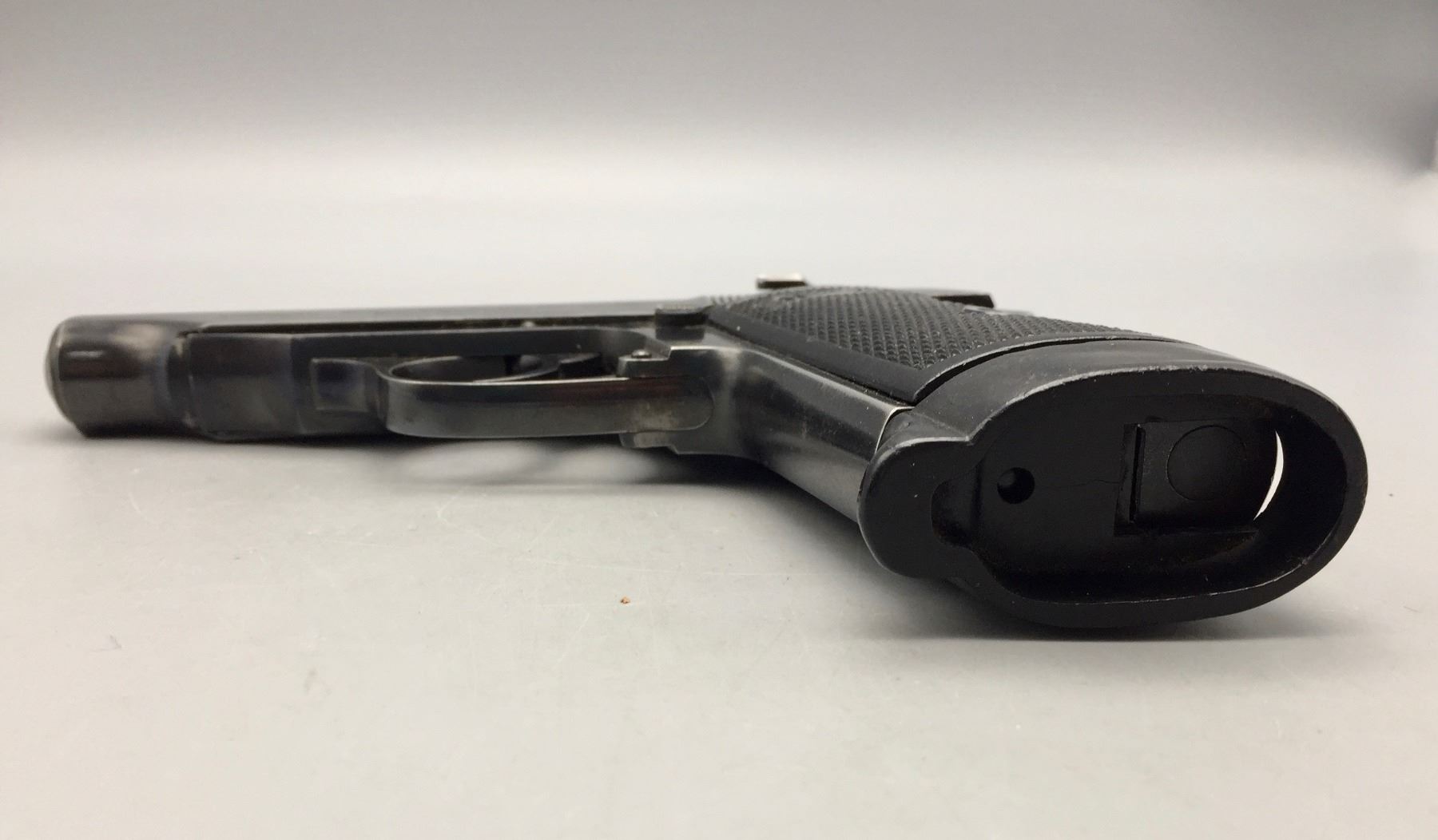 Description: Presented for sale in this lot is this Walther, PP, in a rare .22 (5.60) caliber, featuring blued steel, original grips and a German marked leather holster. This one is in very good (98% +) condition! It comes with an extra clip. The holster is marked D.R.G.M. and the German insignia underneath the flap. The holster also has a German mark on the outside of the flap which is probably not original to the piece. Maker: Walther. Approx. Age: Late 1930s based on serial # 143969. Size: Standard size for this model, but in a rare 5.60 (.22 LR) Cal.. Condition: Very good for its age, minor wear expected. Retains much of its original finish. Please look closely at the pictures - they are an important part of our description. Shipping: There will be a $10 handling / packaging fee for shipping this lot. The actual cost of postage will be added on top of that. *****This firearm requires an FFL Transfer*****