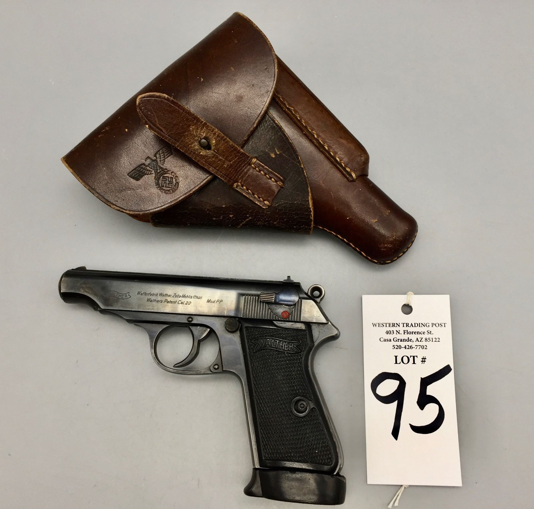 Firearms: Any person(s) bidding on firearms in our auction are required to be at least 18 years of age for long guns and 21 years of age for hand guns. Western Trading Post llc. is a licensed and practicing Federal Firearms Licensed (FFL) dealer. Any Bidders who desire to bid on and purchase any firearms in our auctions cannot have been convicted of a felony, have any restraining orders, or have any reason that they would not pass a NICS FFL Background Check. Western Trading Post llc. reserves the right to run a NICS FFL Background check on any purchaser of firearms. If the Bidder is a resident of the state of Arizona, they may pick up in person once cleared by the NICS FFL Background check. Otherwise, firearms will be shipped to a Federal Firearm Licensed Dealer of your choosing nearest your residence. The Buyer agrees to pay for any and all shipping/handling/fees/etc. necessary for the shipping and transfer of any firearms. Antique firearms and black powder replica which are exempted from NICS FFL background checks can be transferred directly to the purchaser (where legal to do so).