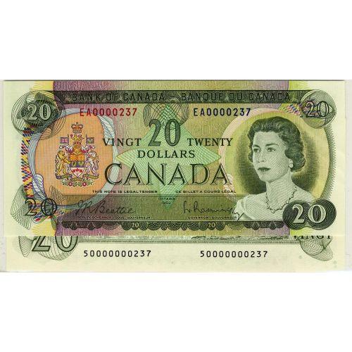 Low numbered match pair; 1969 and 1979 $20's with same serial#0000237. Both notes are Choice Unc