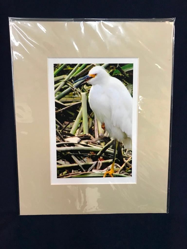 Original photograph, c.2015, by SC artist Lindsey Eavenson, "Lowcountry Marsh Bird". Stamped on reverse Grey Willow Emporium. 4 1/2" X 6 1/2" IN 8" X 10" matboard ready to frame.Â