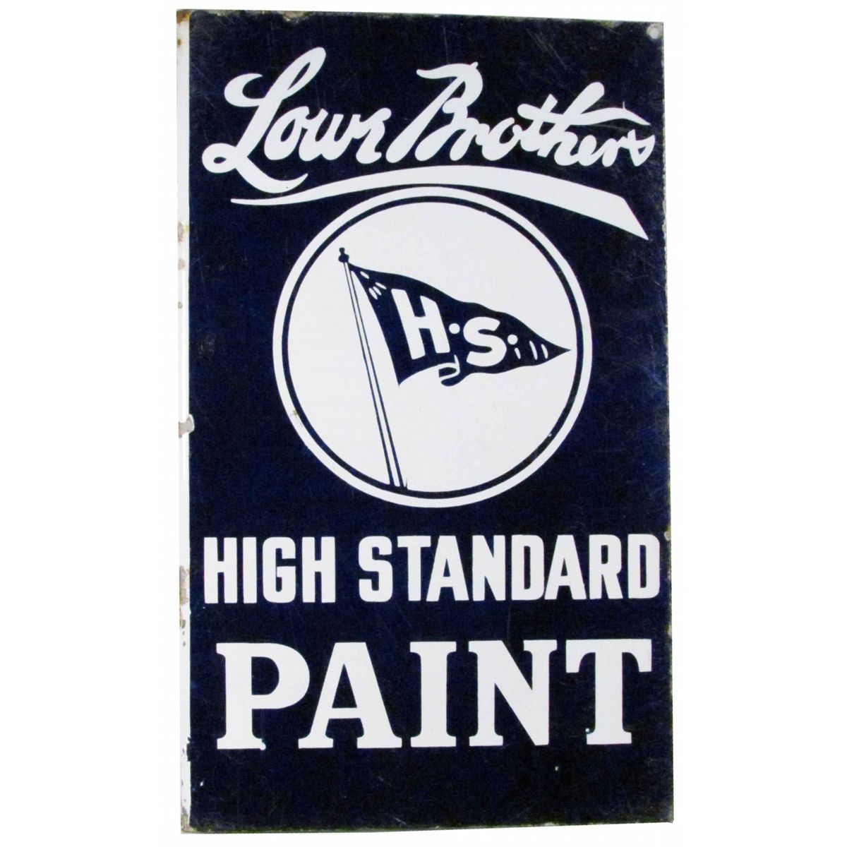 Lowe Brothers Paint Heavy Porcelain Flange Sign, two sided. Scratches and edge wear otherwise good condition. 12 X 20 inches.