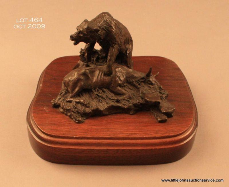 Lowell Davis bronze of bear standing over a dead steer, approx. 5” high, 7” wide and 5” deep; in overall excellent condition. Est.: $750-$1,500.