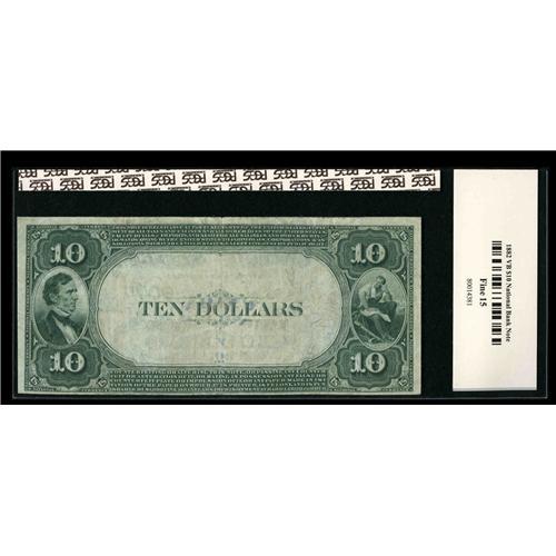 <B>Lowell, MA</B></I> - $10 1882 Value Back Fr. 577 <B>The Union NB</B></I> Ch. # (N)6077<BR>There are just 30 1882 Value Backs for all denominations and banks in the census for Massachusetts. The PCGS red label states "washed; signatures redrawn." <B>PCGS Apparent Fine 15.</B></I>