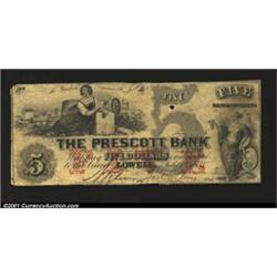 Lowell, MA - The Prescott Bank $5 July 1, 1855 G8aA rare issue that is listed as SENC in Haxby.