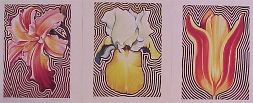 IRIS, TULIP, LILY, 1980, set of three color screenprints, each signed in pencil, from the numbered edition 250, sheets 16 x 11”, with tirage sheet and portfolio case. $200/400
