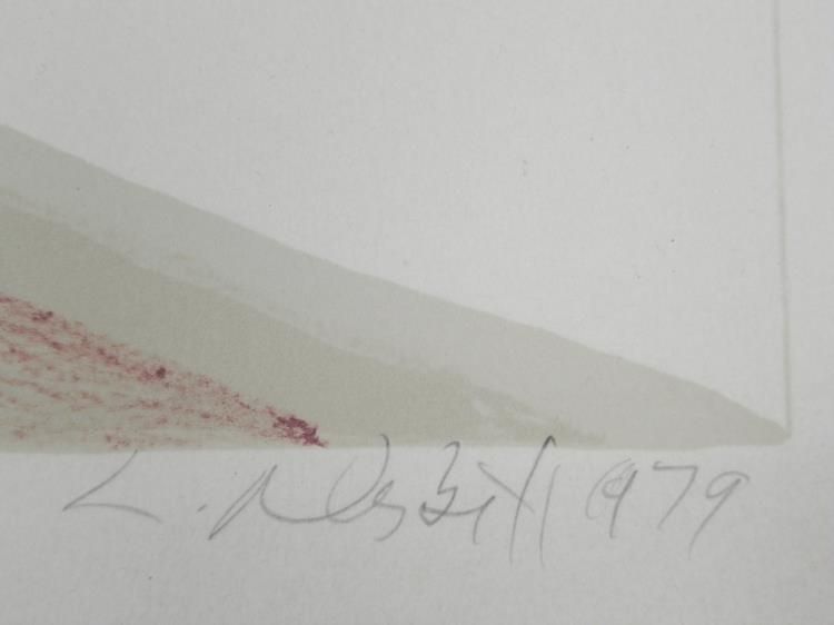 This nicely detailed still life portrays a study of light bulbs, in traditional and striking red. * * * Artist: Lowell Nesbitt * Signature: "L. Nesbitt" In pencil, lower right * Year: 1979 * Medium: Lithograph on rag paper * Edition: Unnumbered, dedicated artist's proof, marked "To Ron" in pencil, lower left * Sheet size: 23 1/2 x 29 1/2 inches * Condition: Excellent * * * Biography: * Nesbitt graduated from the Tyler School of Art at Temple University in Philadelphia, and the Royal College of Art in London, where he majored in stained glass and etching.During his career he had more than 130 solo exhibitions in museums and galleries throughout the United States and abroad, including the Stable Gallery, Andrew Crispo Gallery, Gimpel and Weitzenhoffer, Brooke Alexander, Inc., Stafanotty Gallery in New York; the Baltimore Museum of Art; Galerie M.E. Thelen in Cologne; Gimpel and Hanover Galerie in Zurich; the Aldrich Museum of Contemporary Art in Ridgefield, Connecticut; Museo de Bellas Artes in San Juan Puerto Rico; Hester Van Royen Gallery in London; the Butler Institute of American Art in Youngstown, Ohio; the Henri Gallery in Washington, D.C.; and the Gertrude Kasle Gallery in Detroit. His work is included in the collections of more than 100 museums, government institutions, and corporations, including those of the Museum of Modern Art in New York; the High Museum of Art in Atlanta, Georgia; the Hirshhorn Museum and Sculpture Garden in Washington, D.C. the Yale University Art Gallery; the Worcester Museum in Massachusetts; the Renwick Gallery and the National Collection of Fine Arts of the Smithsonian Institution; the Art Institute of Chicago; the Fogg Art Museum; the Dallas Museum of Fine Arts; the Cleveland Museum of Art; the National Gallery of Art in Wellington, New Zealand; the Israel Museum in Jerusalem; the Plateau Beaubourg of the Pompidou Center and Biblioteque Nationale, Paris, France. * We are pleased to present from an estate a group of dedicated artist proofs. *