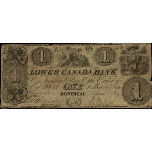 Lower Canada Bank 1837 $1 Nov. 4, Montreal signed 'White' No.1453 Fine for issue. Charlton catalogue (P.226) NO KNOWN ISSED NOTE. Believed to be UNIQUE. Forever, an excessively rare item. Worth a premium bid. A museum piece