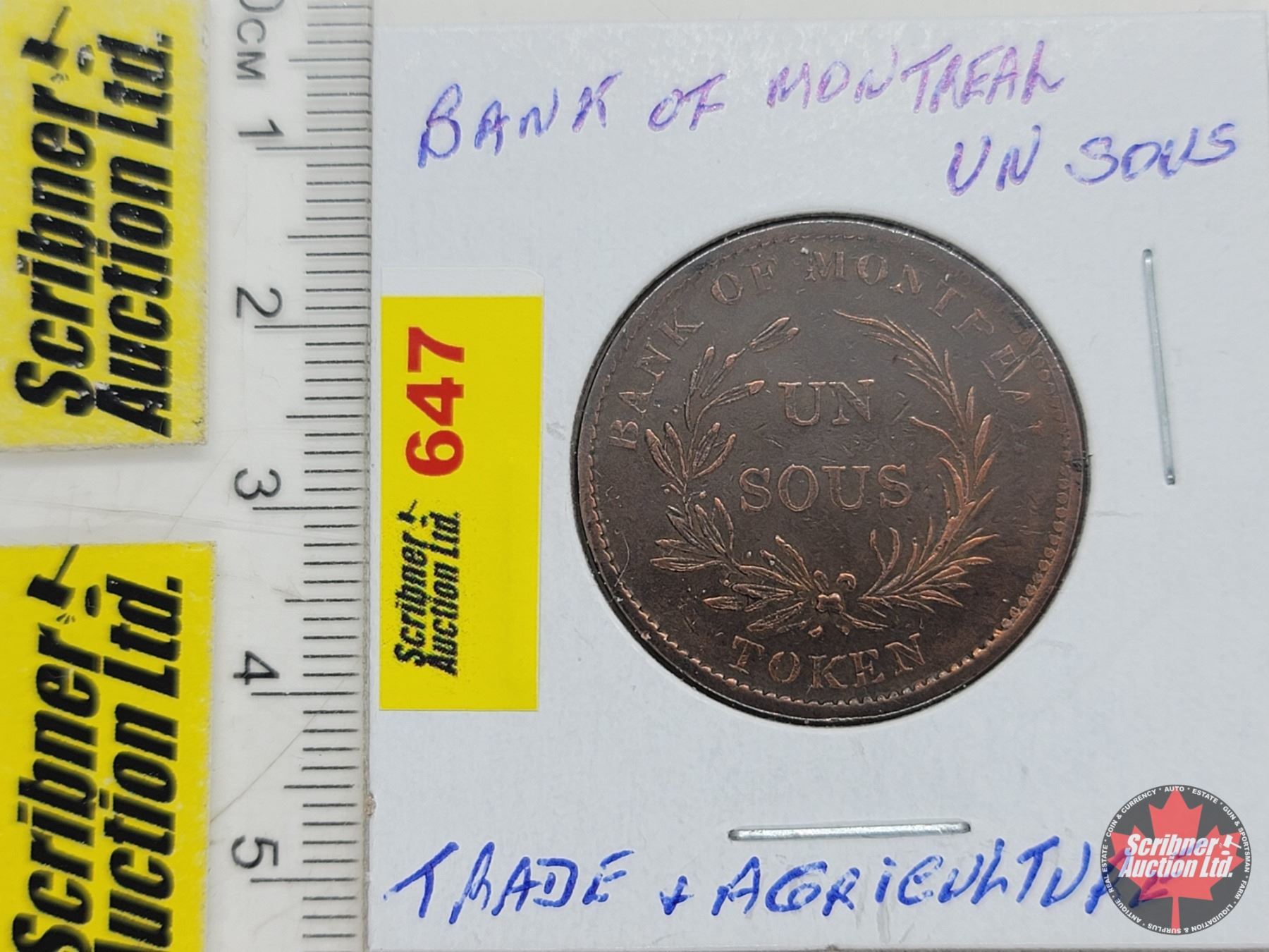 Lower Canada - Bank of Montreal 1836 Un Sous : Trade & Agriculture (SEE PICS!)