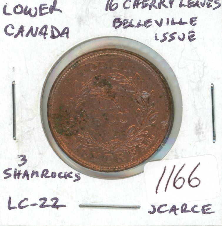 Lower Canada Bellevile issue Half Penny Token. 16 Cherry Leaves, 3 Shamrocks. LC-22. Scarce.