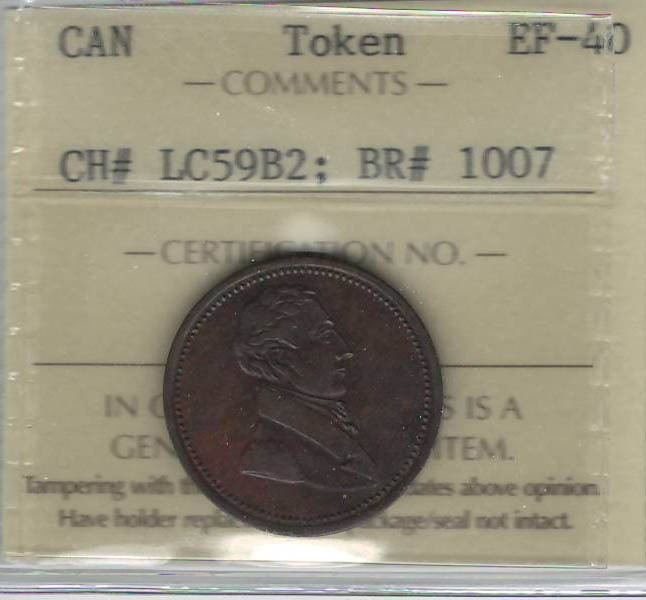 Lower Canada Breton 1007, CH. LC59B2 Token ICCS EF40
