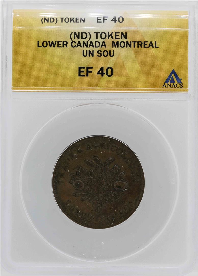 One Lower Canada Montreal Un Sou Token ANACS XF40. ANACS Certified.