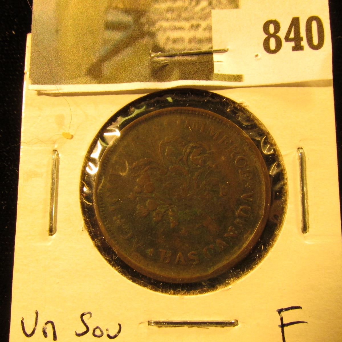 Lower Canada Un Sou token, Fine, Charlton LC-32B.