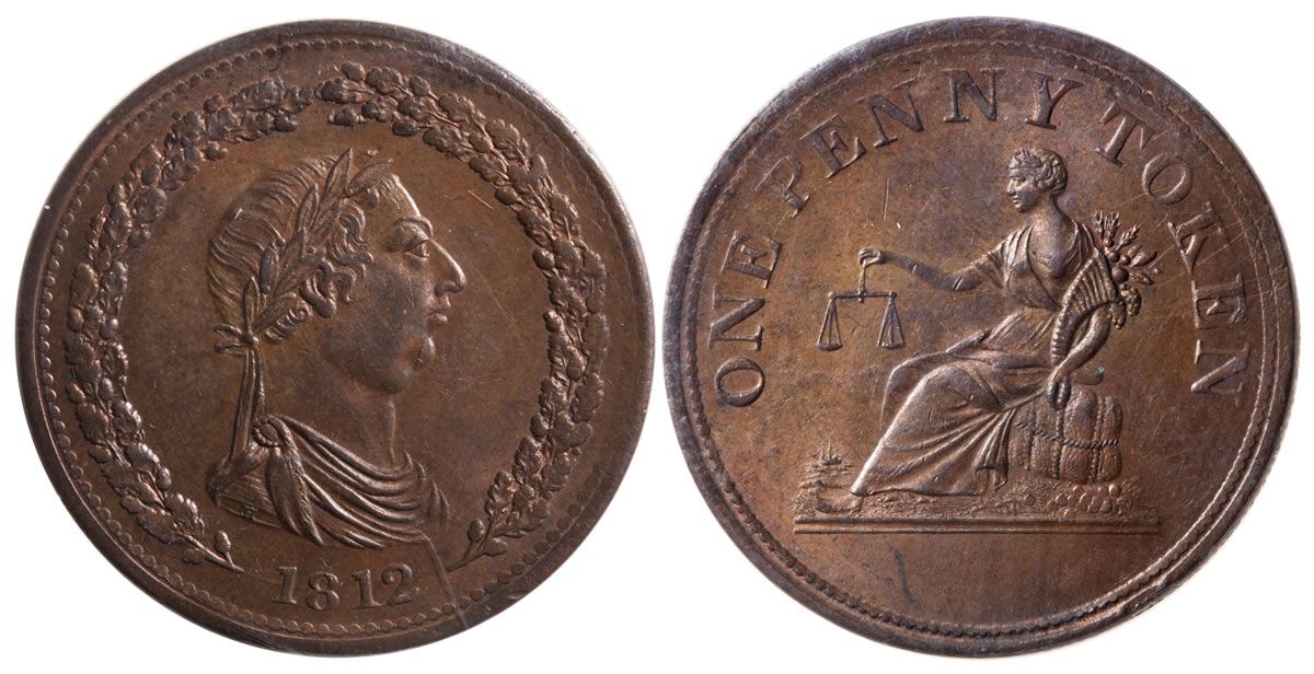1 Penny 1812. Breton-958. LC-47C2. Acorns,↑↓. ICCS graded MS-63.