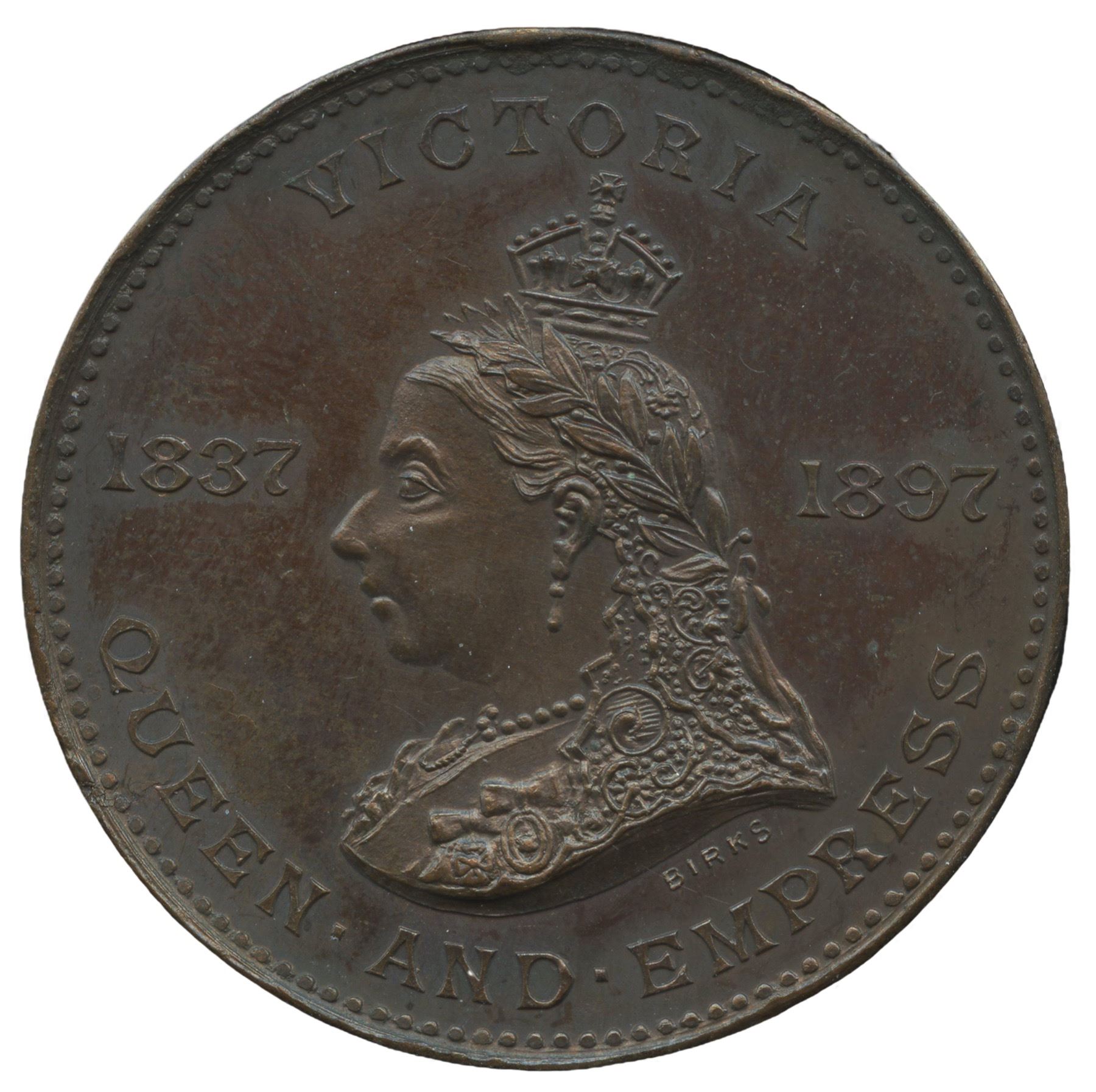 30mm. 12.3g. Plain edge. Signed BIRKS. Beautiful violet and blue toning with rose and green accents. Partial original red colour within the reverse recesses. From the Michael Joffre Collection of Canadian Historical Medals.