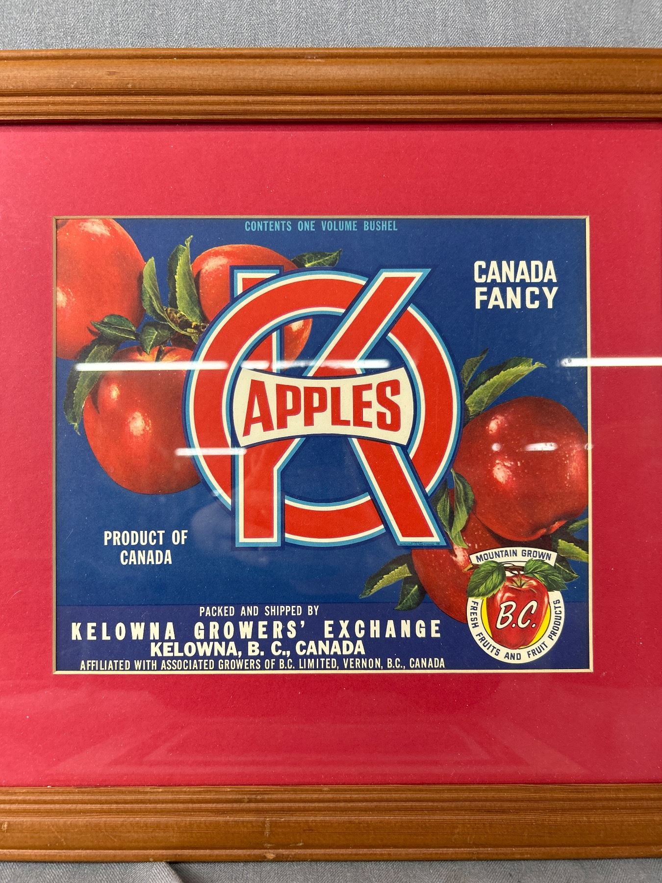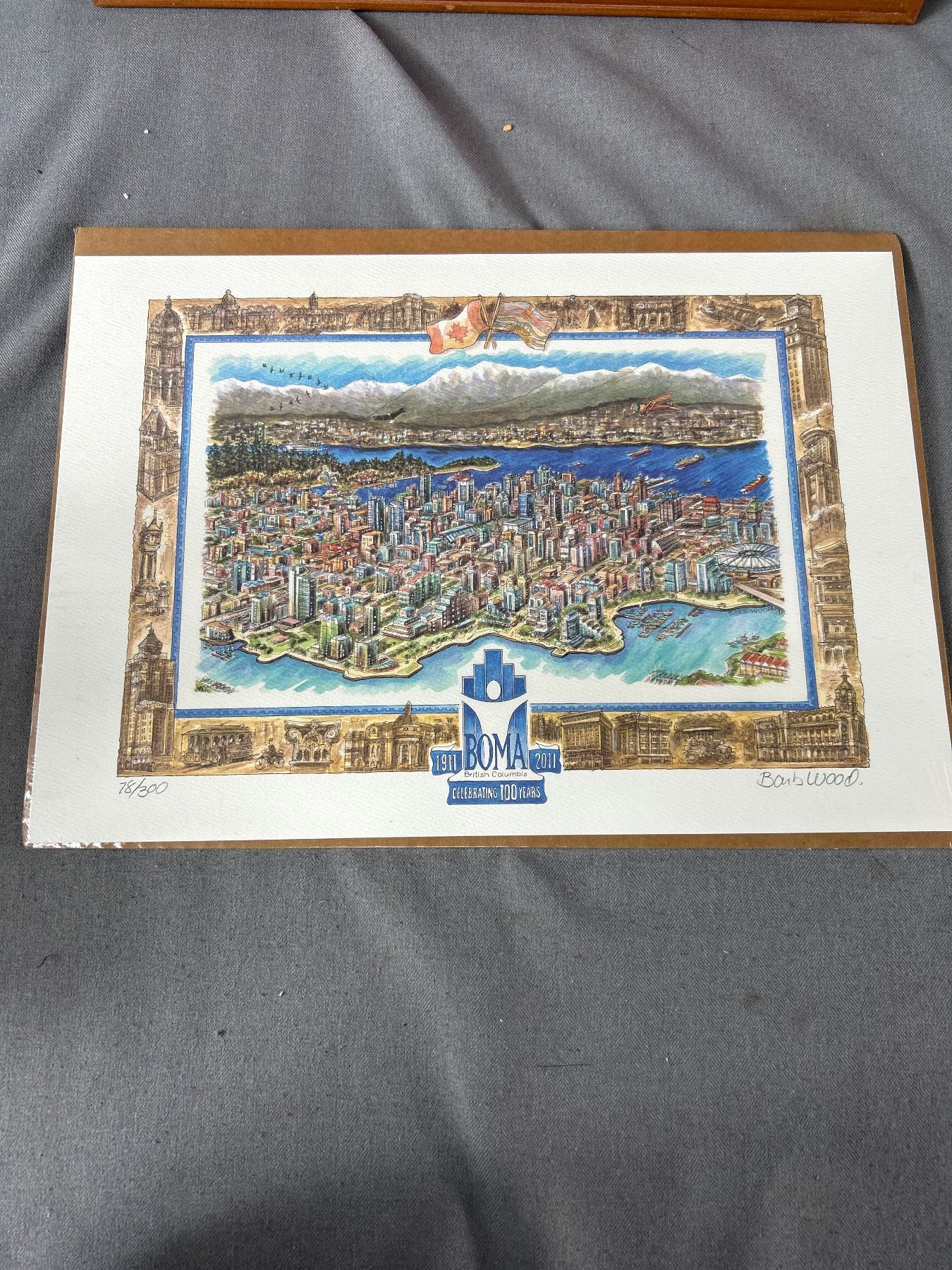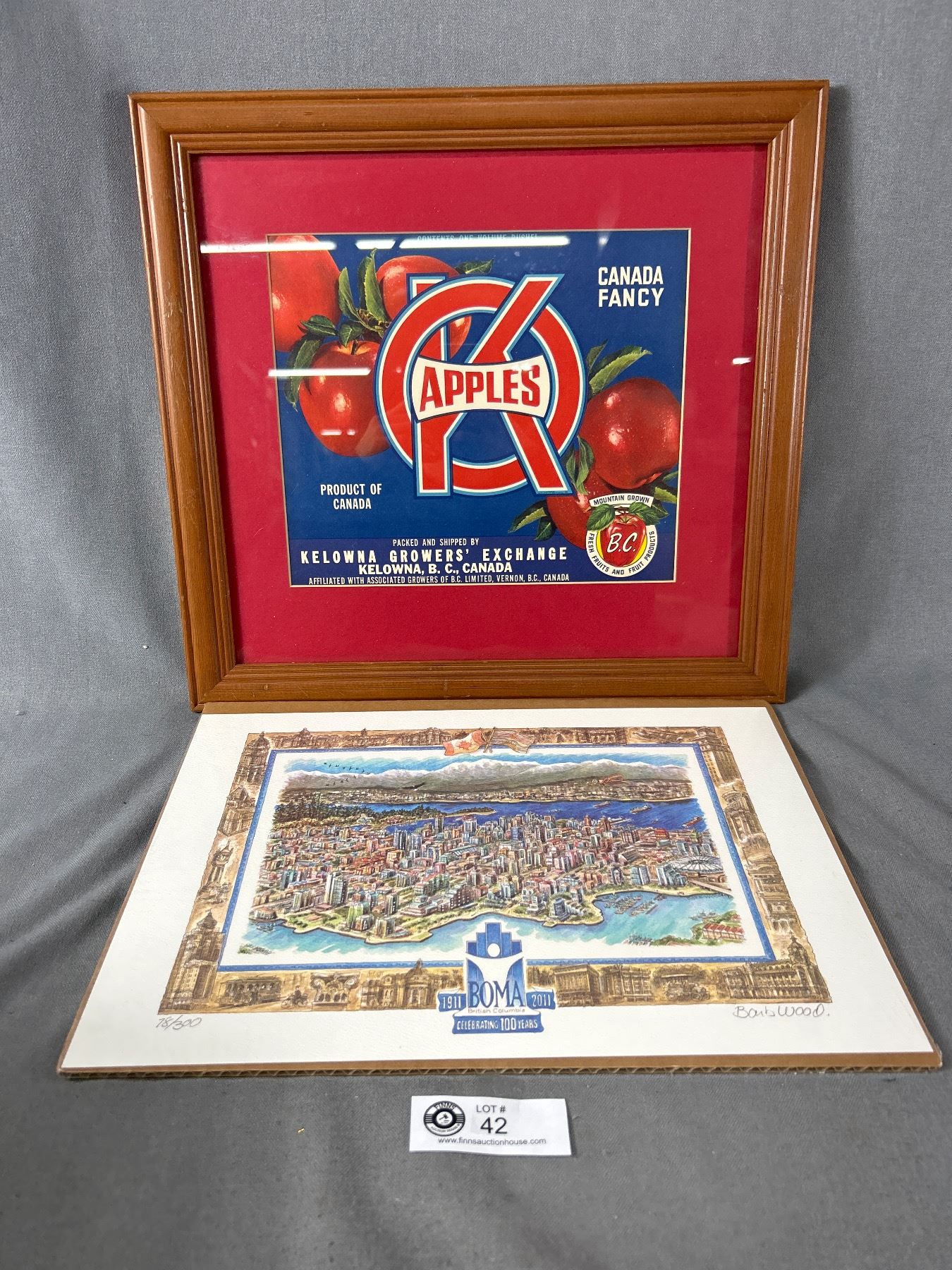 Ltd Ed. 78/300 Signed Barb Wood Commissioned "1911 BOMA 2011" Celebrating 100 Years In B.C. & Framed Kelowna Grower's Exchange Box Label