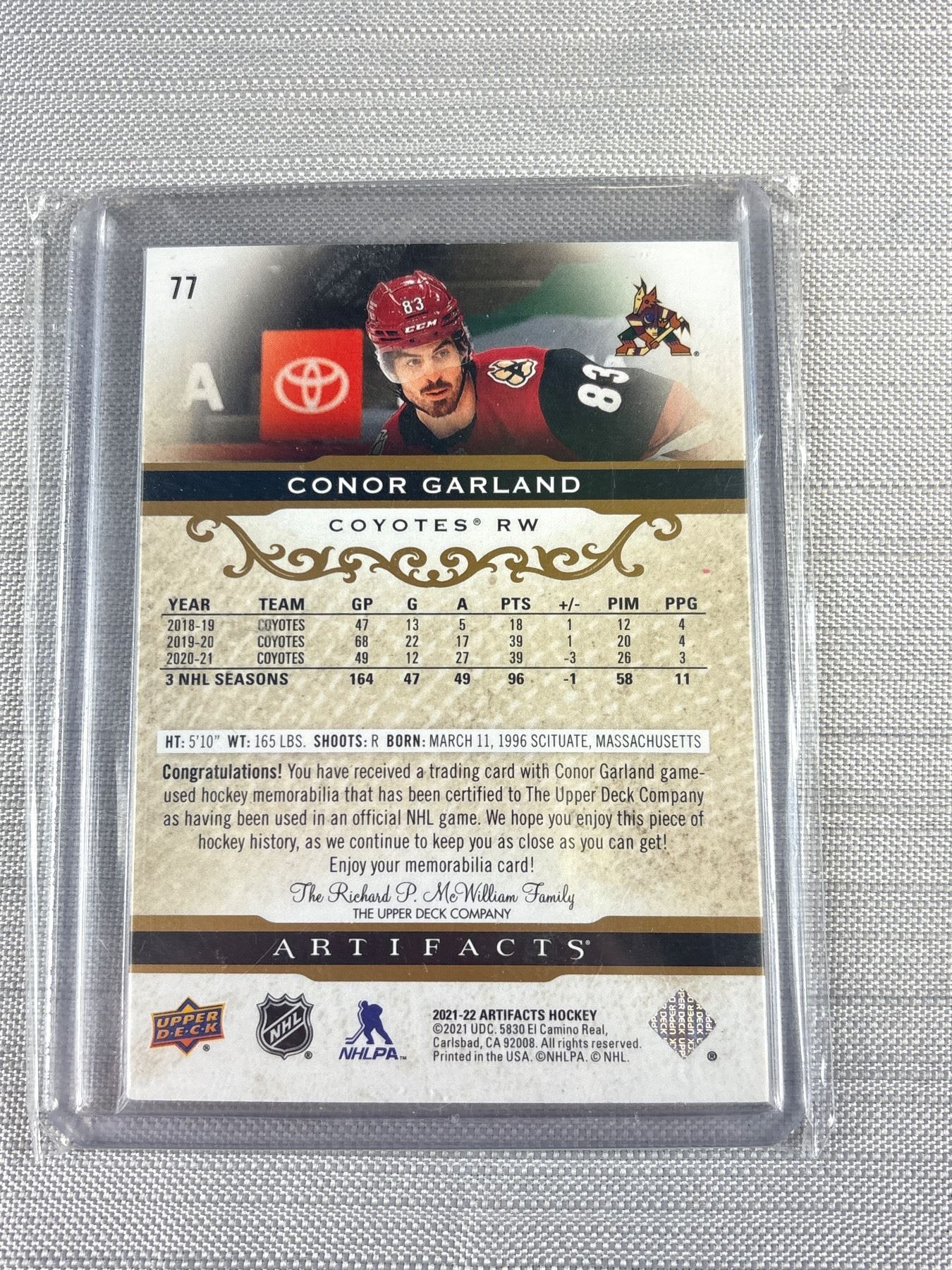 Ltd Edition 2021 UD Artifacts LTD Ed 196/249 Dual Patch Jersey Card Conner Galland