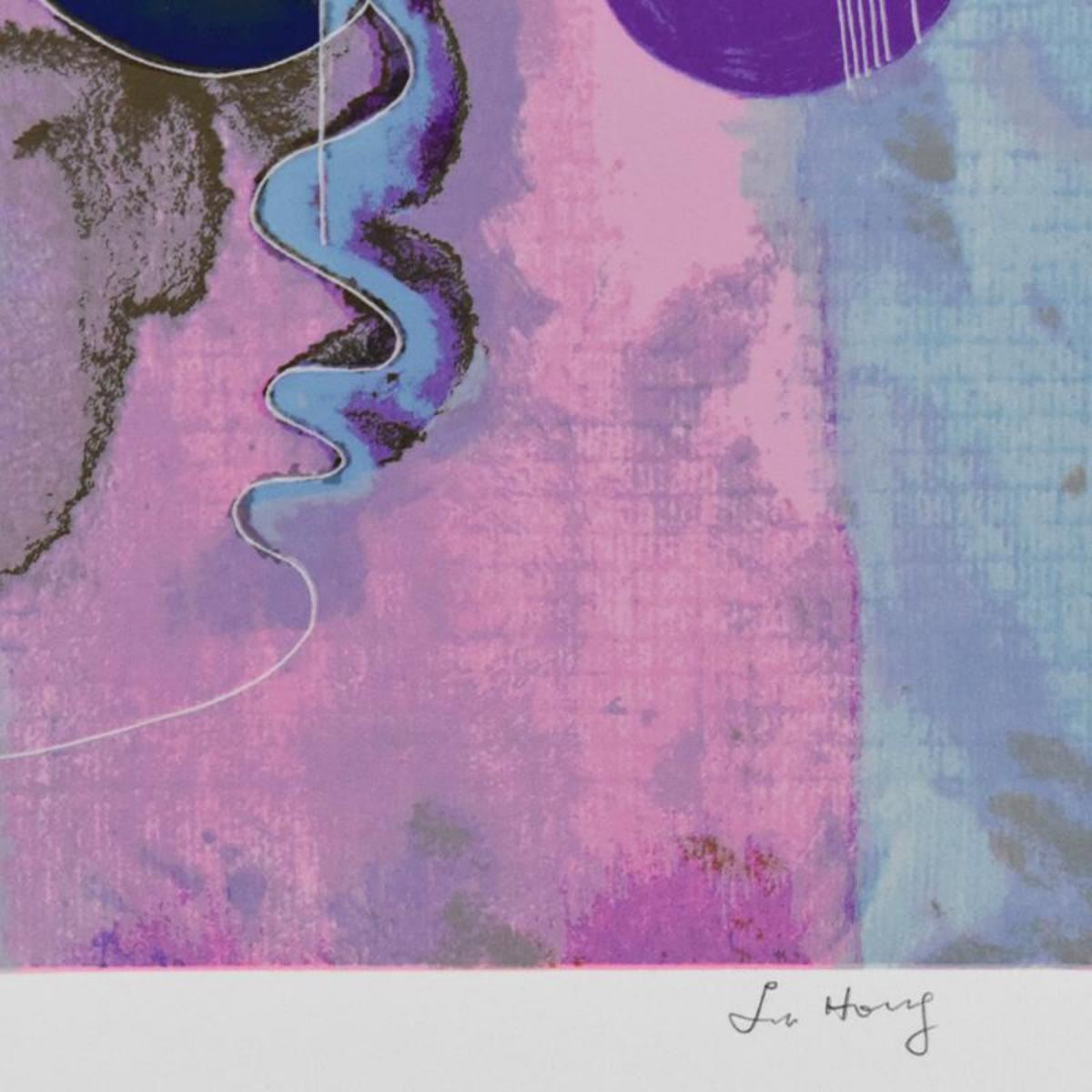 "Concerto" is a limited edition serigraph on paper by Lu Hong, numbered and hand signed by the artist. Includes Letter of Authenticity. Measures approx. 37" x 38" (with border), 33" x 33" (image). Please note: there is a small tear on the bottom-left border area that may be concealed when framed. Reference #: 251421.