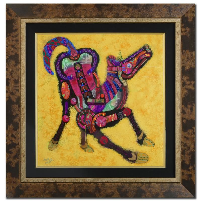 Under the grounded influence of the Earth Element, the Earth Horse becomes the most stable and sensible of the Horse types. The Earth Horse can be considered the "work horse" member of the Horse sign and in turn, can move on a more steady path towards their goals. But because of their preference to consider all the angles in achieving an objective, those born under this sign can sometimes play it too safe and miss out on opportunities. The traditional Chinese calendar follows a 60-year, rotating name cycle where each year's name contains two parts: the celestial stem (an animal zodiac), and the terrestrial branch (a natural element). The animal character is taken from a rotating list of 12 signs, while the elemental term is taken from a rotating list of five elements (wood, fire, earth, metal, and water). In this way, any given year's zodiac sign occurs only once every 60 years. "Earth Horse" is an original mixed media painting on rice paper by Lu Hong, hand signed by the artist! This piece is custom framed using acid-free materials and is ready to hang! Includes Certificate of Authenticity! Measures approx. 28.5" x 29.5" (with frame); 18.5" x 20" (image).