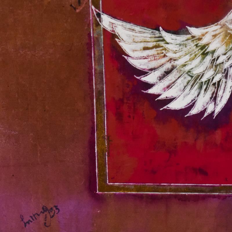 "Esoteric Dream V (1996)" is an original mixed media painting on paper by Lu Hong, hand signed by the artist. This piece comes custom framed. Includes Letter of Authenticity. Measures approx. 36" x 36" (frame), 26" x 26" (image).