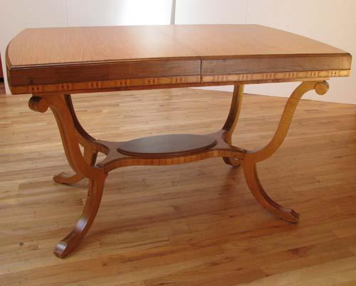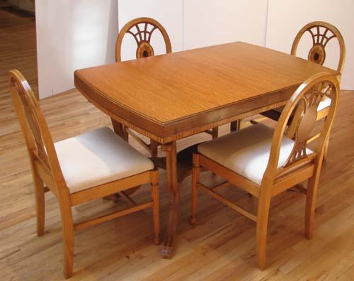 Title: Highly Decorated and Veneered Table and 4 Chairs