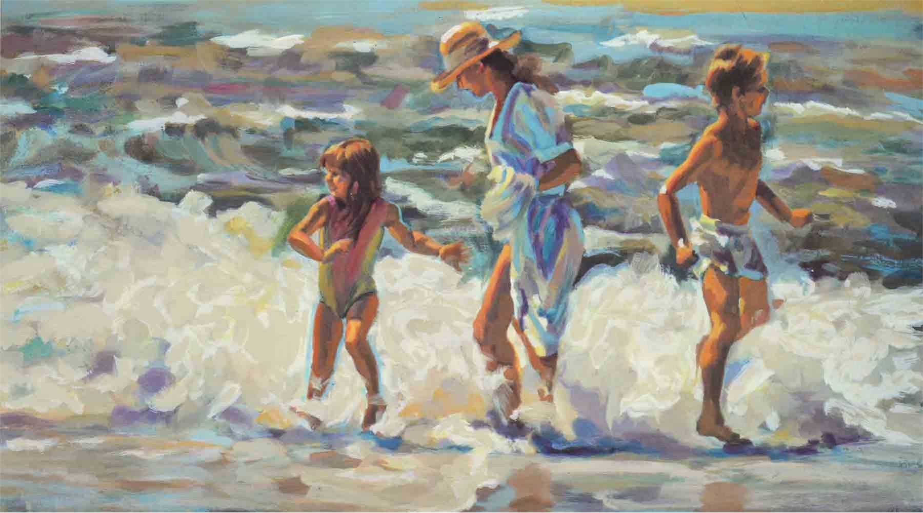 Artist: Lucelle Raad (b. 1942) - Title: Family - Medium: Serigraph on Fine Art Paper - Signature: Hand-signed by the Artist - Limited Edition: AP 50 - Image Size: Approximately 12 Inches x 21 inches - Paper Size: Approximately 14 inches x 24.5 inches - Unframed - Details: This work comes with a Certificate of Authenticity - Biography: Many are touched by Lucelle's blending of the hopeful innocence of children in a commonplace setting. Each case awakens nostalgia for that youthful honesty and simplicity in all that view her work. The recipient of multiple awards, her most prized award was received at the world famous Washington Square Art Exhibit, an annual event in New York which is an invitational, juried show with over 500 artists from every corner of the globe. Lucelle's art graces many corporate, public, and private collections in every state in the union and in countries around the world.