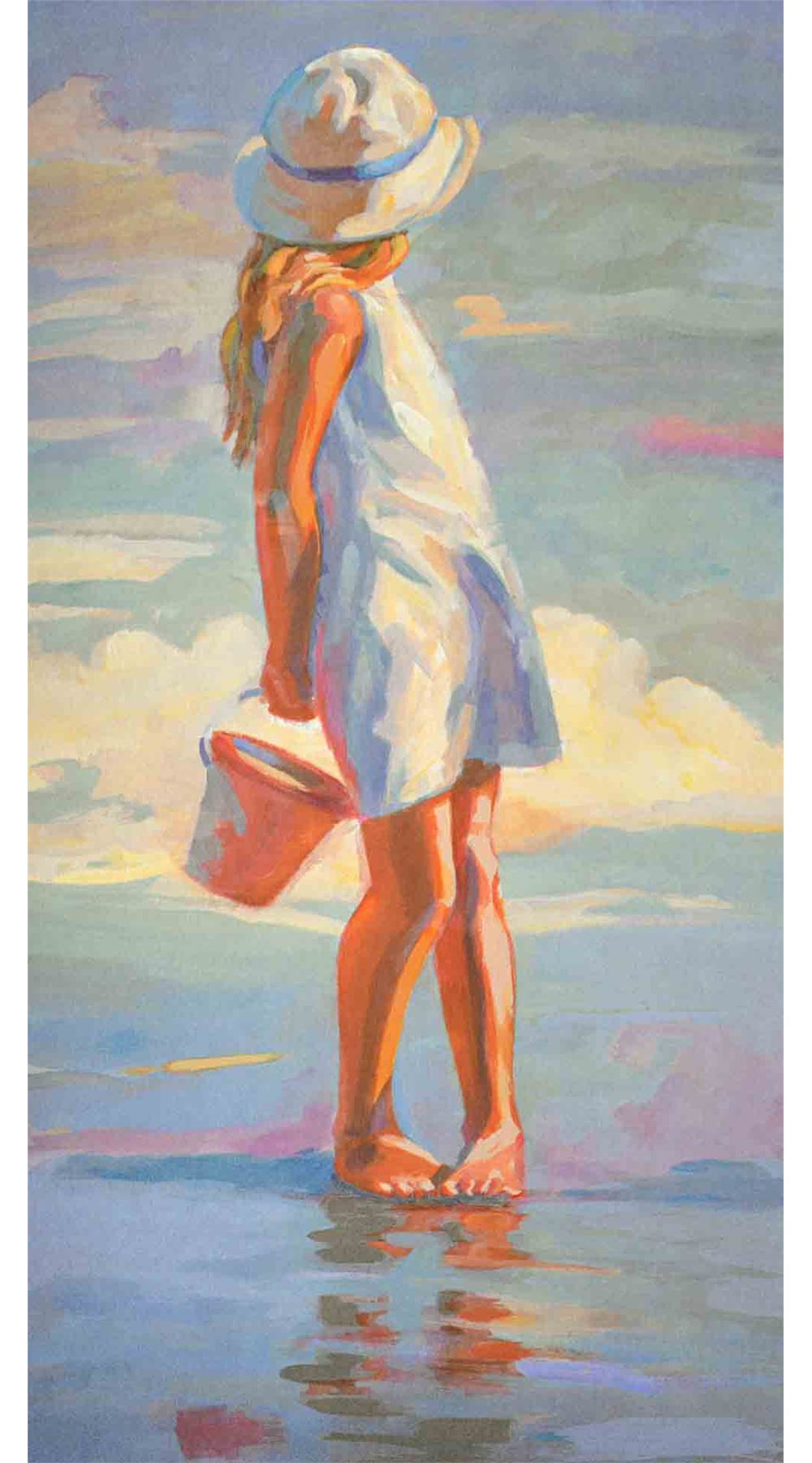 Artist: Lucelle Raad (b. 1942)  - Title:  Golden Girl - Medium:  Serigraph on Fine Art Paper - Signature: Hand-signed by the Artist  - Limited Edition: 300 - Image Size: Approximately 25 Inches x 12.5 inches  - Paper Size: Approximately 28.5 inches x 15.75 inches - Framed: Unframed - Details: This work comes with a Certificate of Authenticity - Biography: Many are touched by Lucelle's blending of the hopeful innocence of children in a commonplace setting. Each case awakens nostalgia for that youthful honesty and simplicity in all that view her work. The recipient of multiple awards, her most prized award was received at the world famous Washington Square Art Exhibit, an annual event in New York which is an invitational, juried show with over 500 artists from every corner of the globe. Lucelle's art graces many corporate, public, and private collections in every state in the union and in countries around the world.